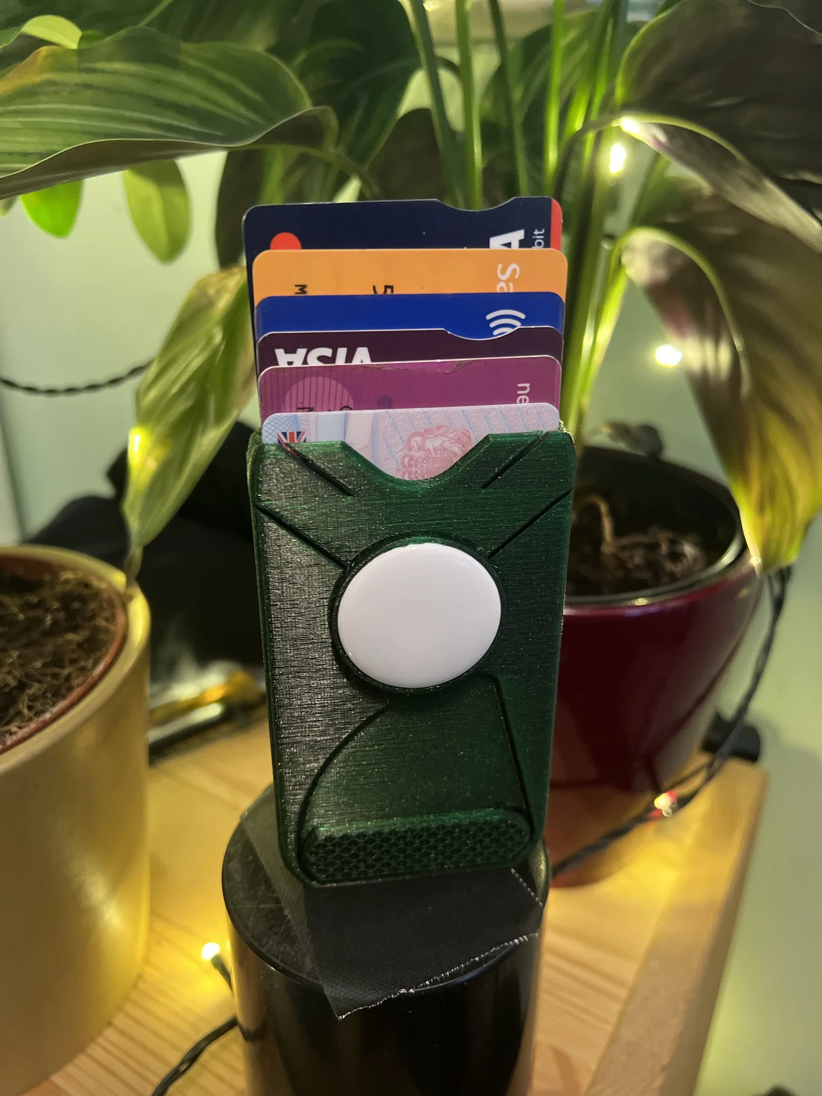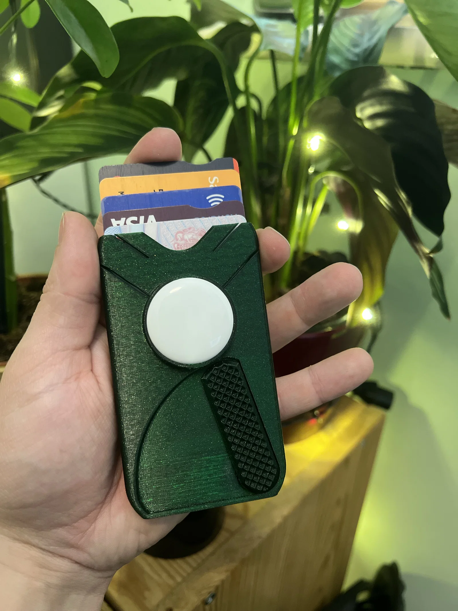 Bản remix của Cascade Wallet phổ biến, thêm chỗ để gắn Apple AirTag bấm vào mặt trước và hạ chìm cho mỏng nhất. Có hướng dẫn thông số in 0.2mm, 2 walls, 15% Gyroid và mẹo dùng Organic supports.