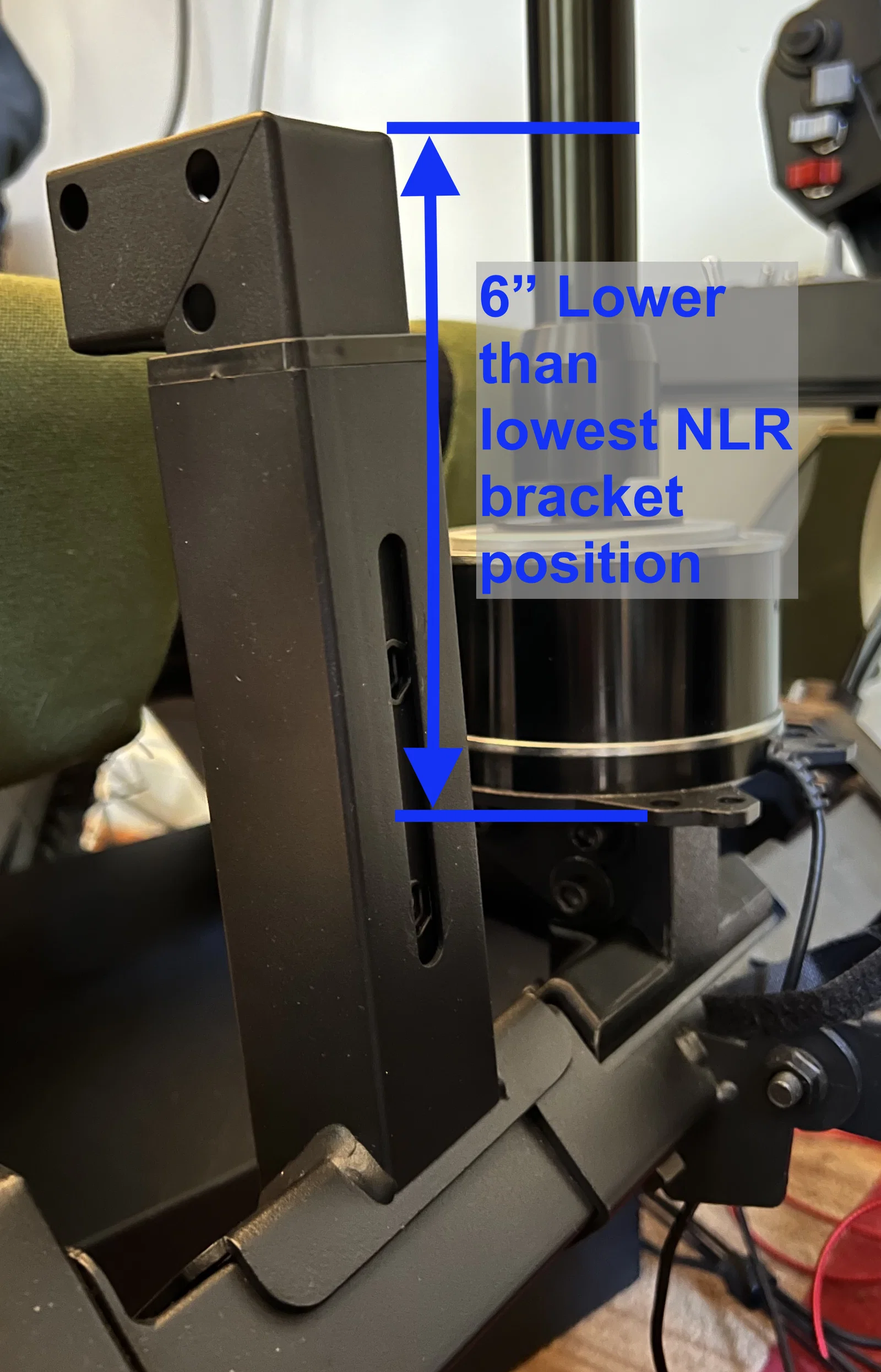 Nếu bạn đang dùng Next Level Racing Boeing Flight Sim Cockpit và muốn gắn thêm extension tube cho joystick, thì cái bracket này làm đúng bài. Nó thay thế bracket zin để tạo điểm gắn thấp hơn khoảng 6" so với mức thấp nhất khi dùng bracket tiêu chuẩn.