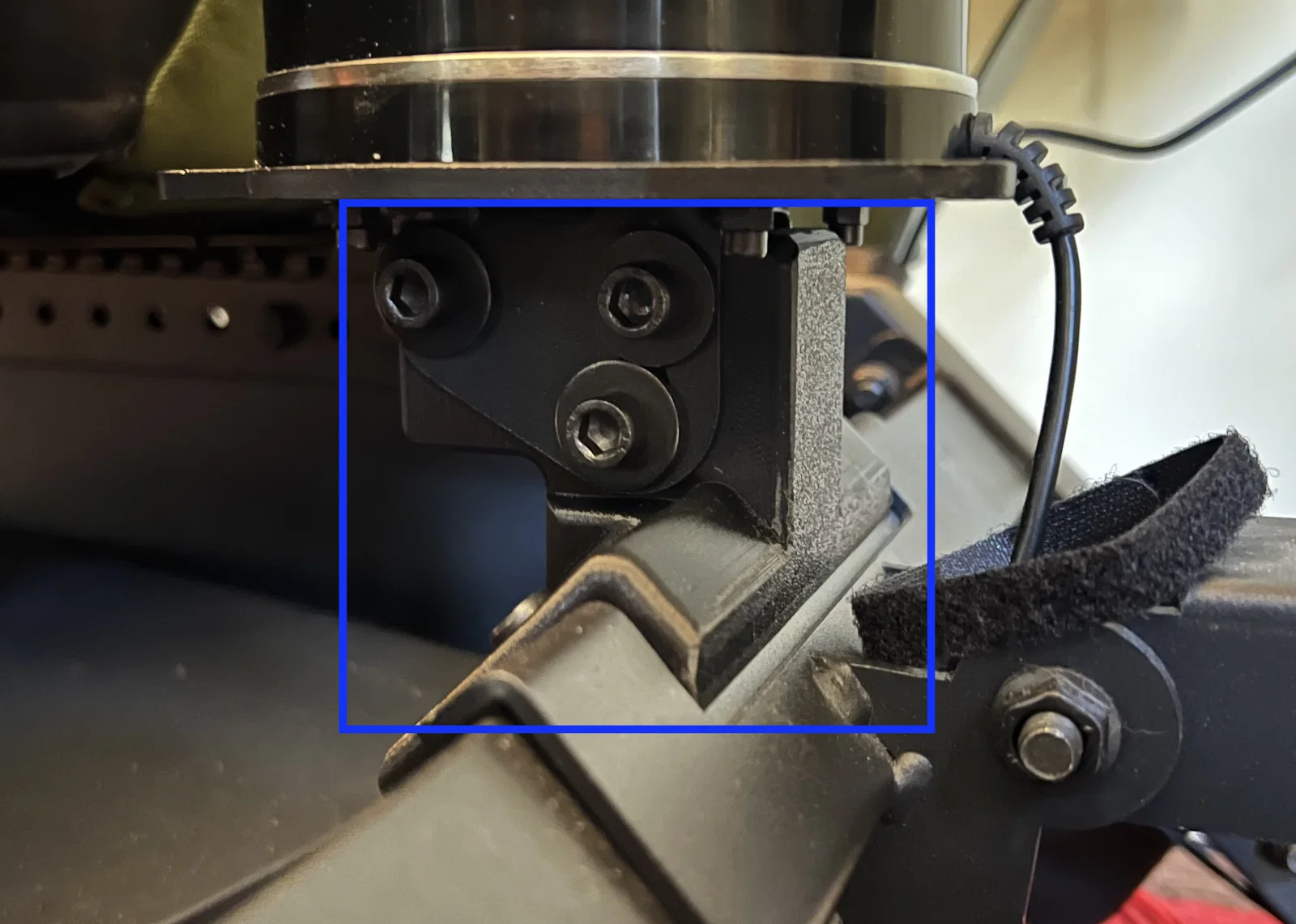 Bracket này dùng lại đúng bộ hardware để bắt vào khung cockpit và joystick adapter plate. Lắp xong là bạn có thể gắn extension tube mà vẫn giữ joystick ở đúng tầm cao phù hợp.
