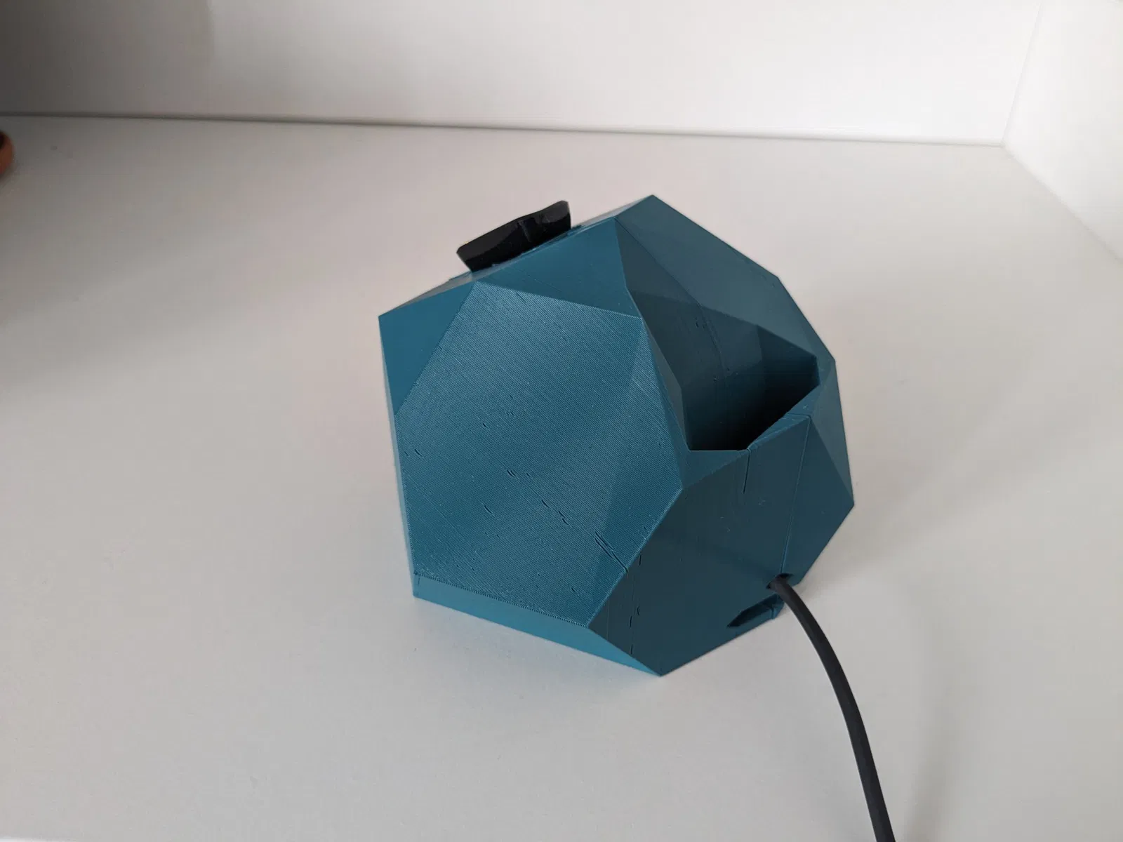 CẬP NHẬT 02/09/2023: Thiết kế đã được cập nhật (V2) mà không cần tách rời. Hình dạng cũng được tối ưu hóa để có thể in mà không cần hỗ trợ. Sau khi đưa cổng USB qua giá đỡ, hãy sử dụng kẹp cáp (phần bổ sung) để giữ kết nối ở vị trí.