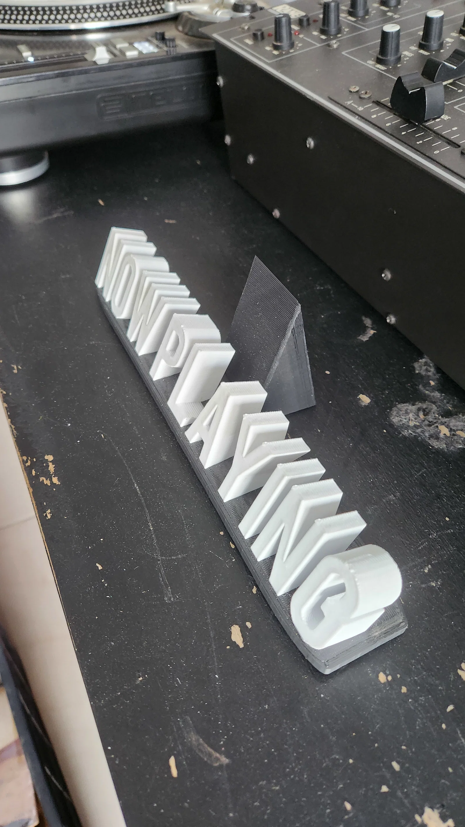 Kệ đỡ/trưng bày bìa đĩa vinyl “Now Playing” cho góc nghe nhạc hoặc bàn làm việc. Thiết kế gồm 2 phần dán lại, dáng thanh lịch. Có thể in phần chữ màu khác để tạo điểm nhấn rõ hơn.