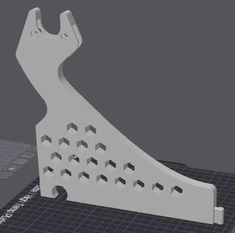 Mình kéo dài chiều cao của cái cradle, để nó có thể vừa cả những cuộn Extrudr Spools đường kính lớn nhất (đường kính tới 350mm), đồng thời chỉnh lại đường viền (contour) cho phù hợp và thêm vài lỗ nhìn cho đẹp để “làm màu” cho phần vách.
