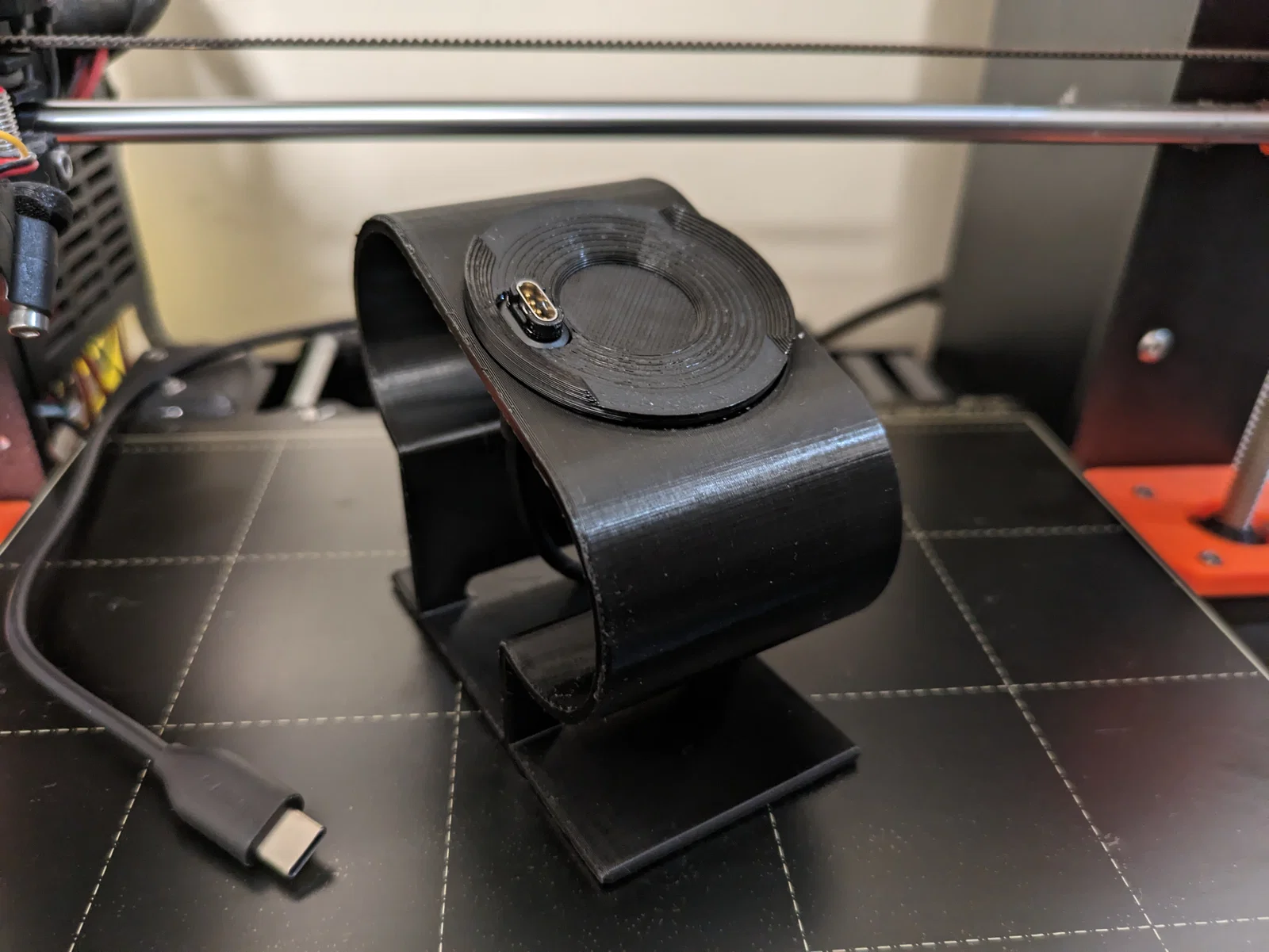 Đây là cái đế kê đồng hồ dạng modular mình thiết kế để sạc đồng hồ Garmin bằng sợi cáp sạc đi kèm. Mình thấy nó chạy ổn với cả Garmin Fenix 6 và 7, còn những mẫu khác thì mình chưa chắc có hợp không. Phần ngàm/giá gắn được tách riêng ra, nên nếu không vừa thì bạn khỏi cần in nguyên cái đế. Dung sai (tolerances) làm khá sít, các phần chỉ cần ép (press-fit) vào nhau là xong.