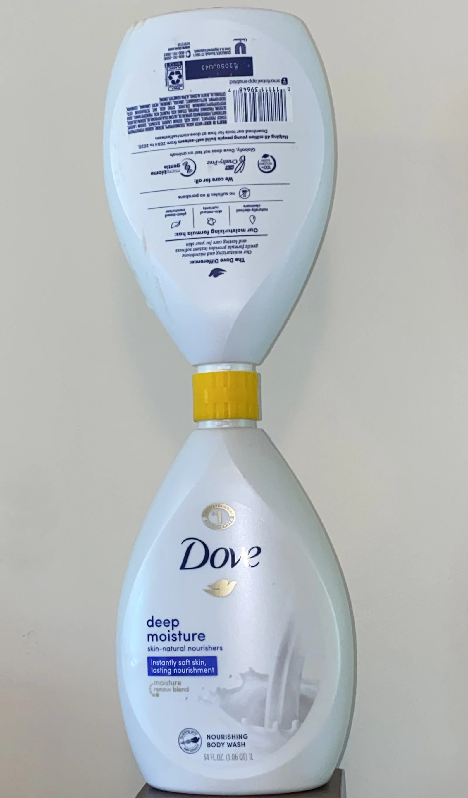 Sữa tắm Dove thường hay còn lại khá nhiều trong chai khi đầu bơm đã bơm không lên nữa. Món này giúp bạn chuyển nốt phần sữa tắm còn lại từ chai cũ sang chai mới. Chỉ cần vặn vào rồi để chai tự chảy qua đêm.