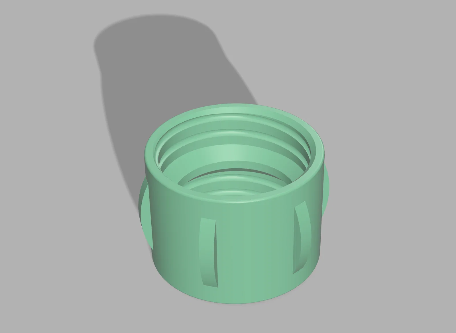 Adapter giúp chuyển nốt phần sữa tắm Dove còn dư trong chai 34 oz sang chai mới. Vặn vào rồi để chai tự chảy qua đêm. Có kèm file nguồn Fusion 360; khuyến nghị dùng bản v6 để bám chắc và in không cần support.