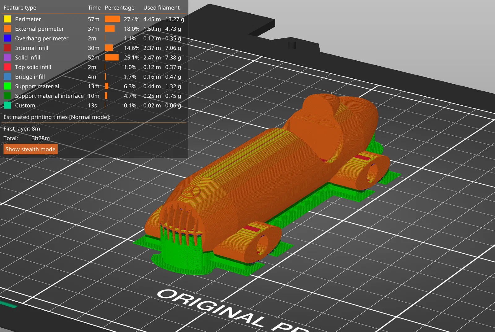 Nếu xe bị khó chạy thẳng trong môi trường/đường đua bạn chọn, hãy tăng % infill ở phần chassis.