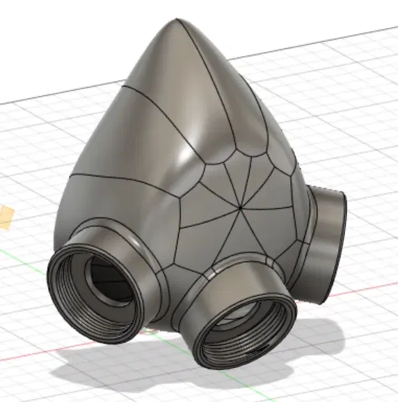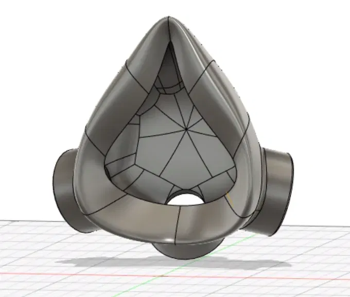 Đây là một nguyên mẫu mặt nạ nửa mặt với 3 cổng NATO. Nó có thể được tạo hình bằng máy sấy tóc để tạo ra một độ kín hợp lý. Mục tiêu là thêm một khuôn để sử dụng keo/silicone nhằm tạo ra một độ kín phù hợp nhưng dự án hiện đang bị hoãn lại. Để xem van thở ra hoàn toàn được in 3D, hãy xem mô hình này: