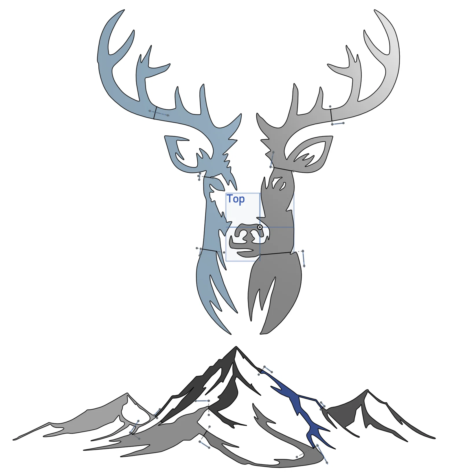Mình muốn in mẫu wall art này thật bự. Vì máy Bambu của mình chỉ in tối đa 25cm x 25cm nên mình đã chia phần đầu hươu thành nhiều mảnh. Các đường ghép được chọn sao cho ít bị thấy nhất có thể. Nhờ cách tạo các đoạn chuyển tiếp, đường seam gần như không nhìn ra.