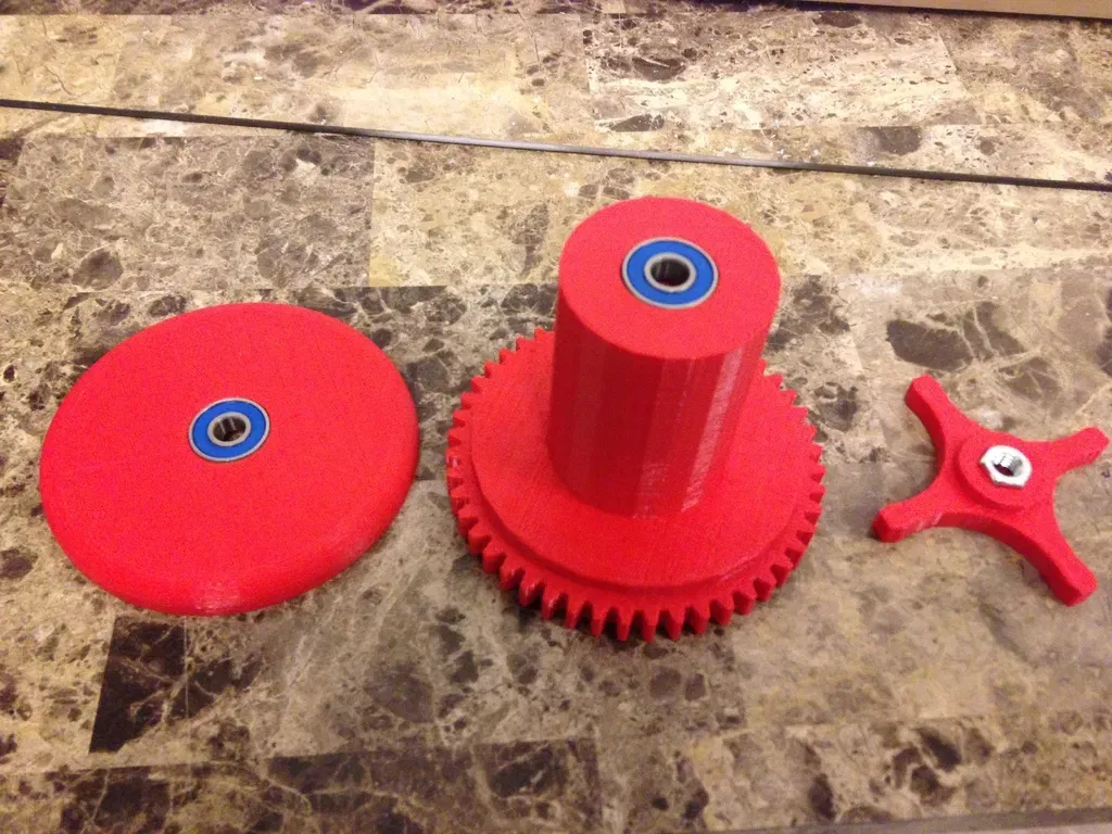 Tôi thích hướng đi của ianjohnson với dự án winder của anh ấy nhưng nó được xây dựng dựa trên thiết kế cuộn của anh ấy và tôi có rất nhiều cuộn trục 50mm nằm xung quanh. (Cùng loại mà MBI bán) Vì vậy, tôi đã tạo ra một giải pháp để in mọi thứ cần thiết. Bạn chỉ cần 3 vòng bi 608 và một số thanh ren và đai ốc. Bánh răng tương thích với winder của ianjohnson. Bánh răng có một vòng bi ở cả hai đầu và nắp có một vòng bi. Nút điều chỉnh, mà là http://www.thingiverse.com/thing:3723, đã được rút ngắn để đai ốc nhô ra dưới đáy và không cọ vào nắp trong khi nó quay. Làm cho toàn bộ cụm quay trong khi kẹp cuộn trong giá đỡ. Dễ dàng lắp vào - dễ dàng tháo ra.