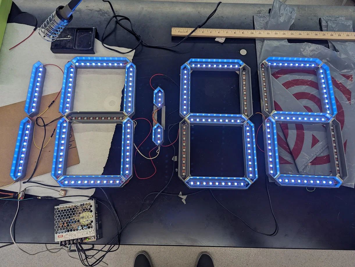 Dự án đồng hồ 7 segment dùng Arduino + GPS để tự set giờ chính xác, không cần NTP, wifi hay nút bấm. Chữ số kích thước lớn (~15" / ~38mm). Vật liệu chính: PLA, WS2812, Arduino Uno, NEO-6M.