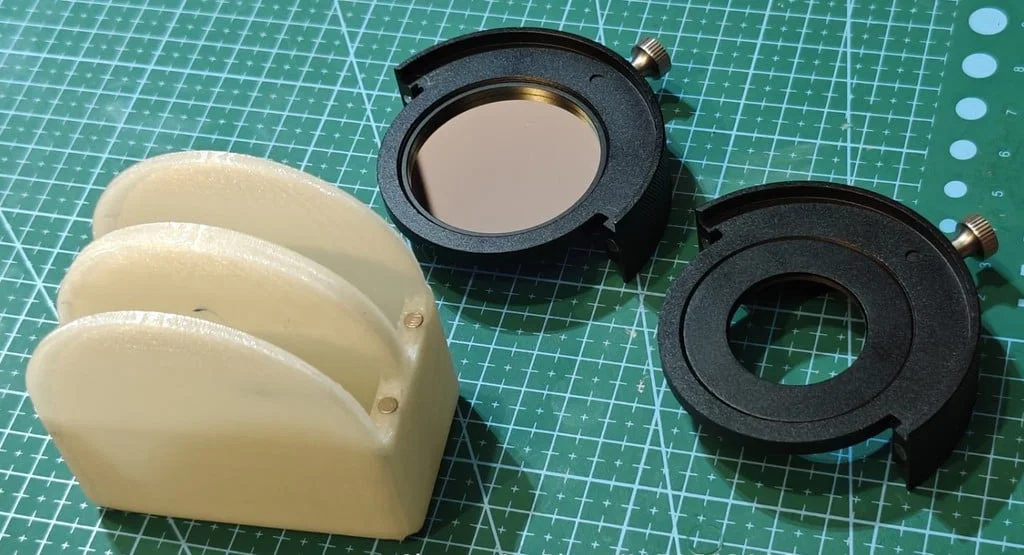 Bộ portafiltros SVbony SV226 đi kèm với hai khay giữ filter, nên mình cần cất chúng gọn và tối ưu nhất có thể trong hộp của mình để dùng nhanh và tiện nhất. Mình cũng chuẩn bị hai phiên bản nắp đậy cho lúc không muốn dùng filter nhưng vẫn tránh ánh sáng lạ (stray light) lọt vào. Một phiên bản có định hướng (orientation) nên lắp khít rất chuẩn, và một phiên bản không có định hướng nhưng độ ôm/khớp không bằng. Tùy theo sở thích của mỗi người.