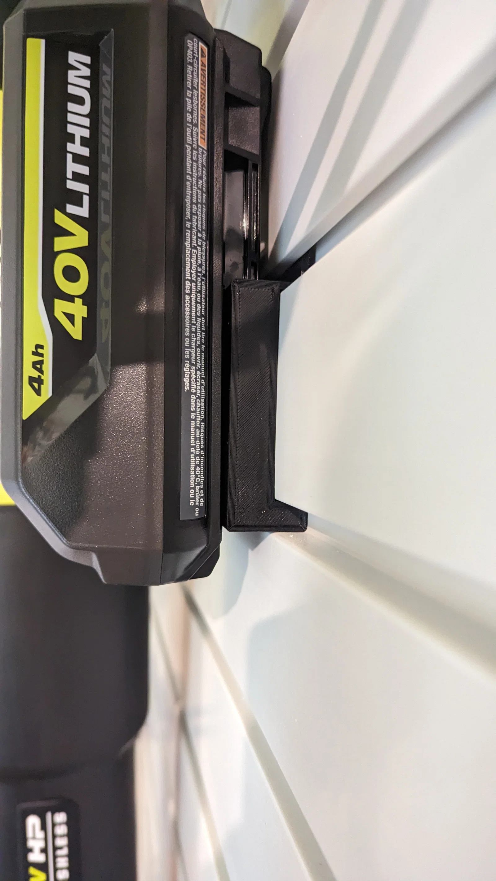 Bộ mount/giá treo cho dụng cụ và pin hệ Ryobi 40V, dùng cho Slatwall chuẩn 3" (như storeWall). Khuyến nghị in layer 0.2mm, nhiều perimeters, dùng supports và in nằm ngang để chắc hơn; có thể cần giũa nub gài để tránh làm hư Slatwall PVC.