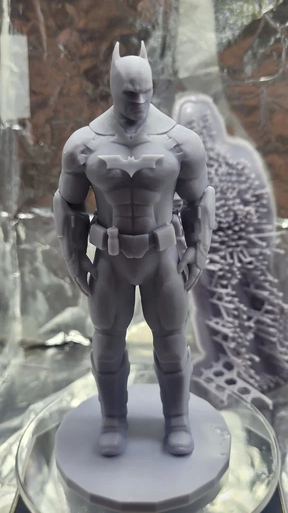 Mẫu tượng Batman được ghép từ thing:1407016 và logo Batman thing:59886, thêm biểu tượng ở phần ngực. In bằng Elegoo Mars 4 Ultra với Elegoo Water Washable Resin; lưu ý cần support kỹ các gai sau tay và các chi tiết thắt lưng.