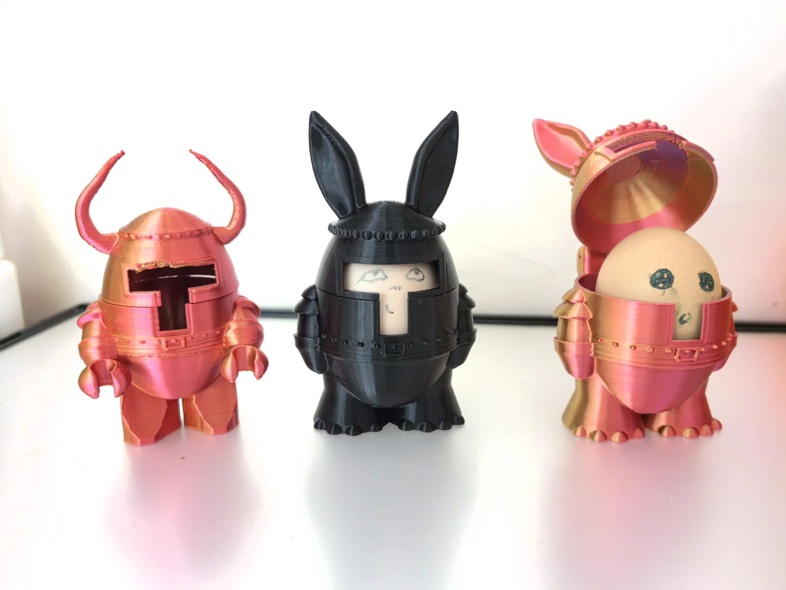 Mẫu “Easter armored bunny” phiên bản V3 đã được chỉnh để các khớp nối chắc hơn và dễ lắp hơn, khắc phục tình trạng dễ gãy. Bạn có thể đặt Easter egg vào trong và tùy ý vẽ mắt để thể hiện cảm xúc.