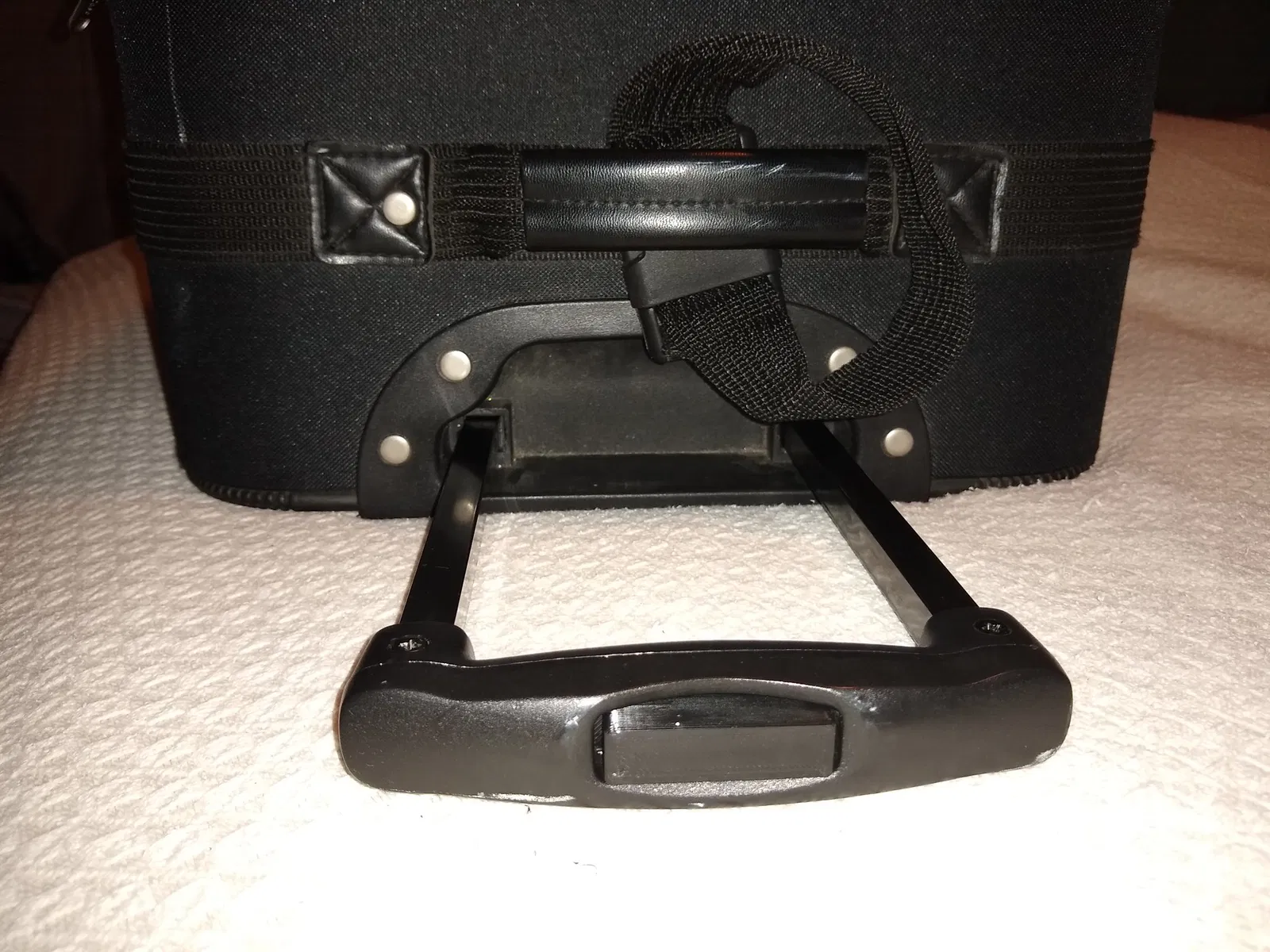 Nút bấm gốc trên vali kích thước xách tay của tôi đã bị hỏng, vì vậy tay cầm không thể kéo dài hoặc thu lại nữa.