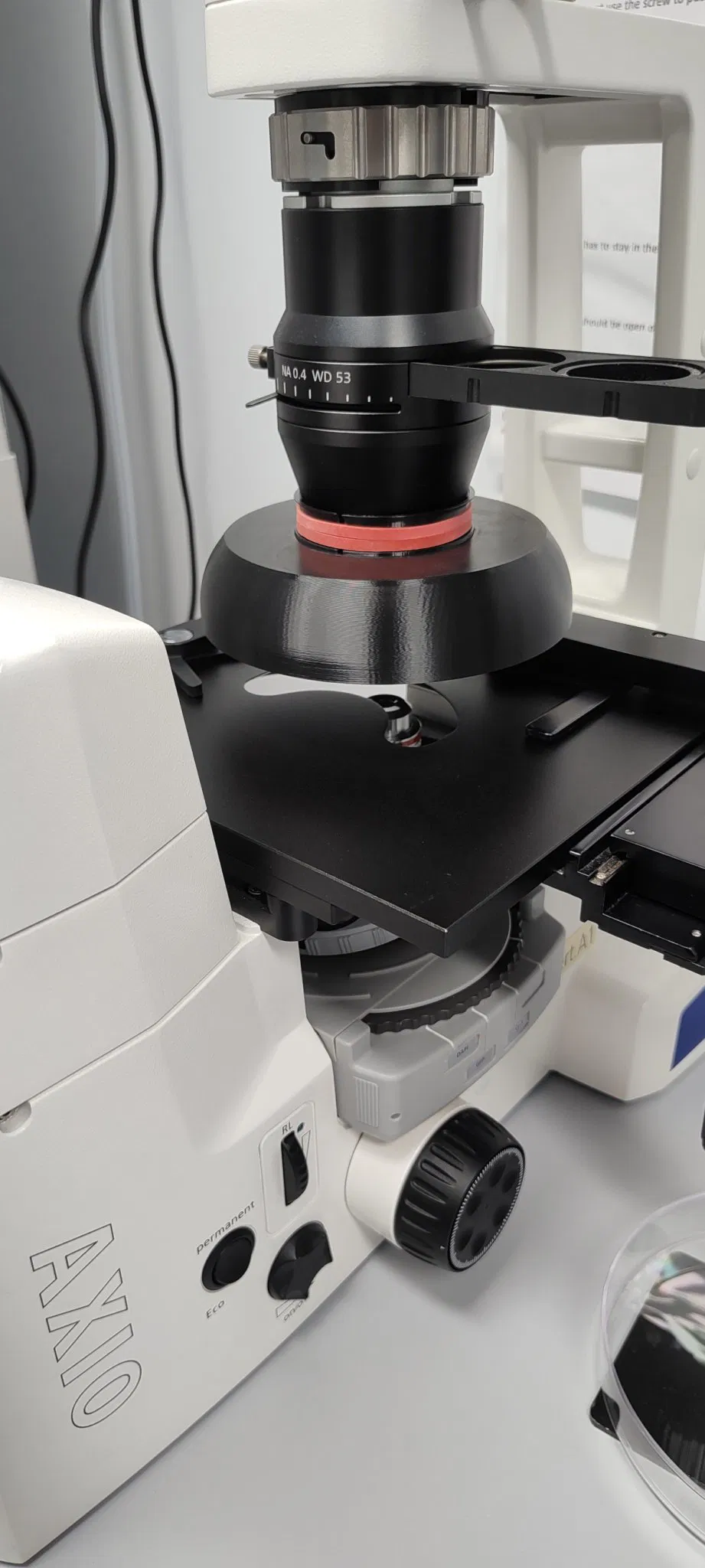 Bảo vệ ánh sáng được thiết kế cho Zeiss AXIO với WD=53 và thấu kính có thân 58mm. Cấu trúc đơn giản hơn so với Bảo vệ ánh sáng Ti2 tương tự, cho phép lắp đặt và tháo gỡ ngay lập tức. In ấn In tất cả các bộ phận với đầu phun 0.4 và chiều cao lớp 0.2 (hoặc thấp hơn) bằng vật liệu màu đen mạnh mẽ. Không cần hỗ trợ. Lắp ráp và sử dụng Quấn cổ áo bằng một dải chun rộng. Chèn cổ áo vào bóng râm, sau đó trượt lên trên trực tiếp vào thân ống kính. Nếu vừa quá lỏng hoặc chặt, điều chỉnh độ căng của chun bằng cách thực hiện nhiều vòng như cần thiết. Cổ áo và bóng râm cố ý không được gắn lại với nhau để bóng râm có thể dễ dàng được nâng lên/nghiêng để có thêm khoảng trống trong quá trình hoạt động.