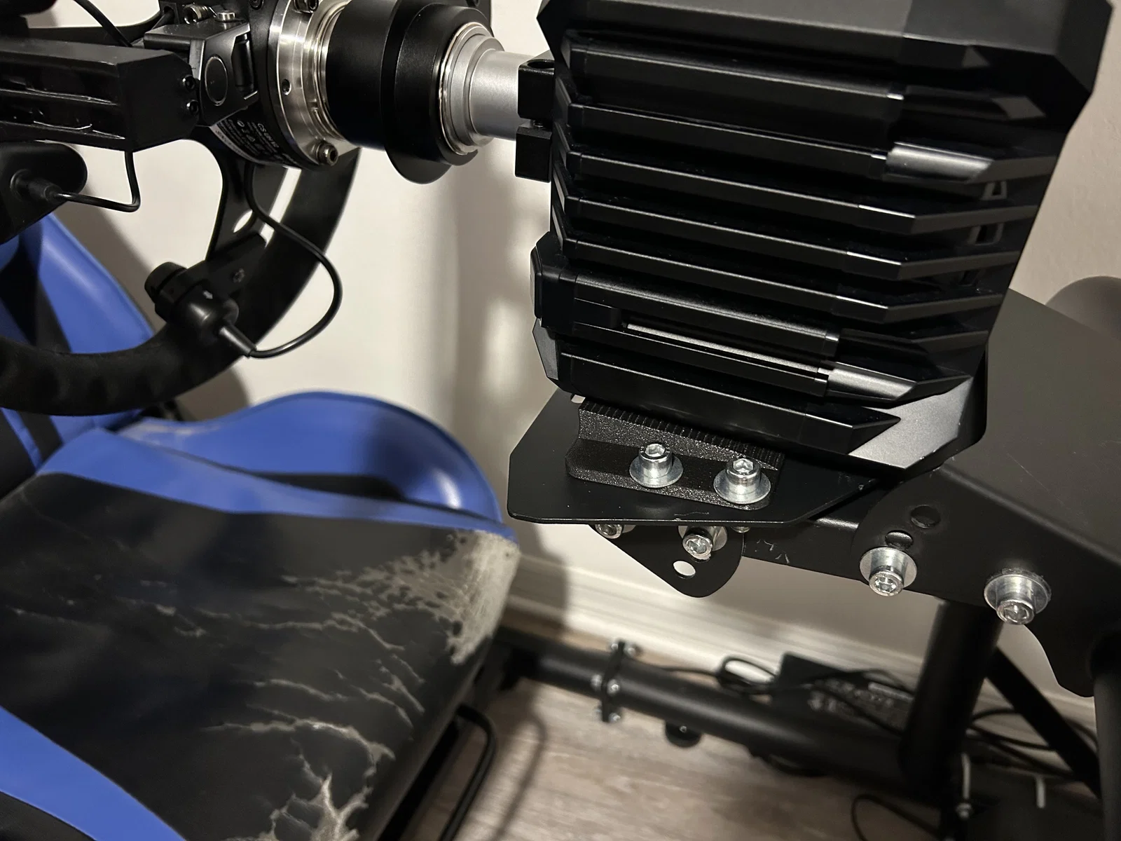 Với adapter gắn này, wheelbase có thể được lắp ở góc nghiêng 8° để dùng vô lăng thoải mái hơn.
