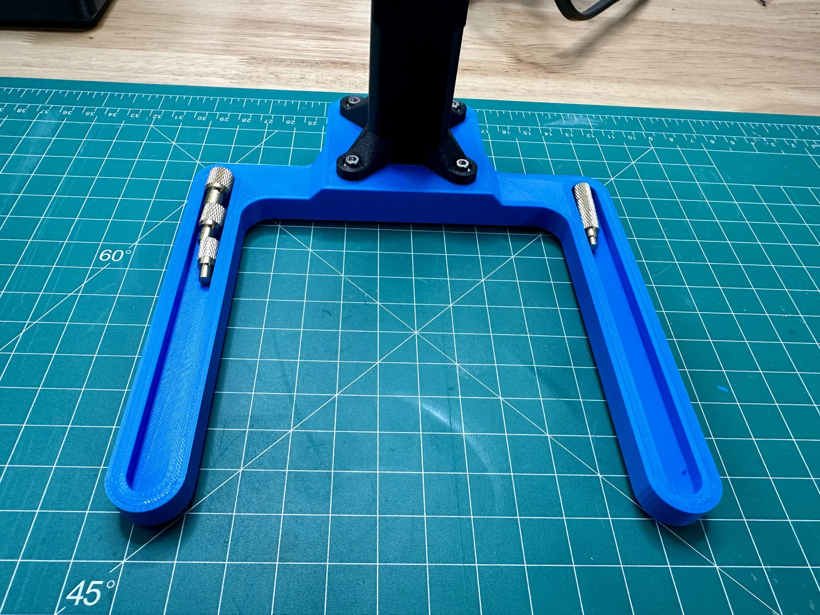 Washer là tuỳ chọn, nhưng mình thường thích dùng khi có thể với các chi tiết in 3D để giảm vấn đề “creep” (biến dạng theo thời gian). Phần đế cũng có khoét chỗ cho chân cao su 10mm để tăng độ bám/ổn định. Các đai ốc M3 ở mặt dưới sẽ được che bởi chân cao su ở phần giữa.