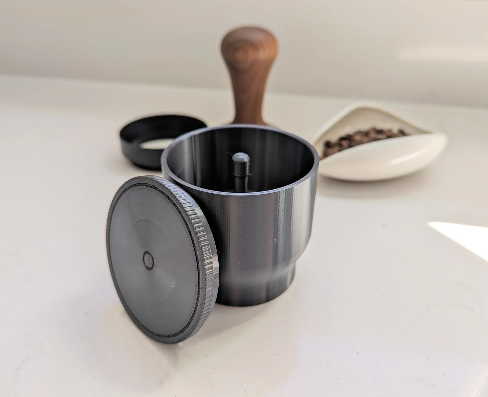 Blind Shaker - Espresso là dụng cụ lắc giúp bột espresso tơi đều, giảm vón cục và phân bố hạt đồng nhất để chiết xuất ổn định hơn. Mẫu 3D printable, in theo hướng file gốc, không cần supports.
