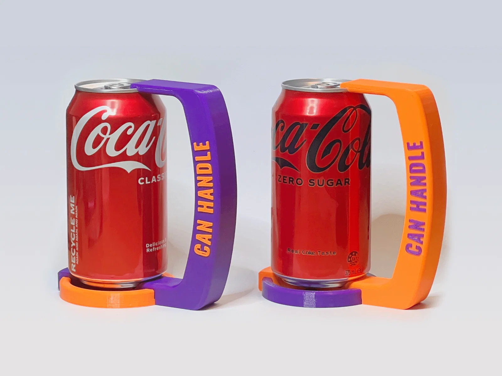 Bộ tay cầm snap-on cho lon nước/beer giúp cầm chắc tay, dễ nhận diện lon của ai, giảm trơn tuột và phù hợp người khó vận động tinh. Có nhiều size theo chiều cao lon, in không cần supports.