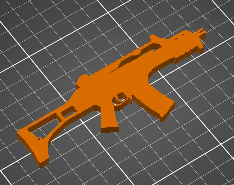 - Thiết kế tối giản, sắc nét: Mô hình mô phỏng lại hình dáng đặc trưng của G36C với những chi tiết được đơn giản hóa để đảm bảo độ bền cao và dễ in.