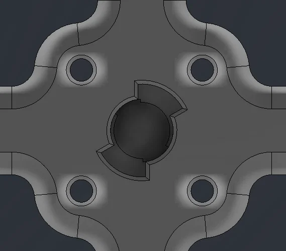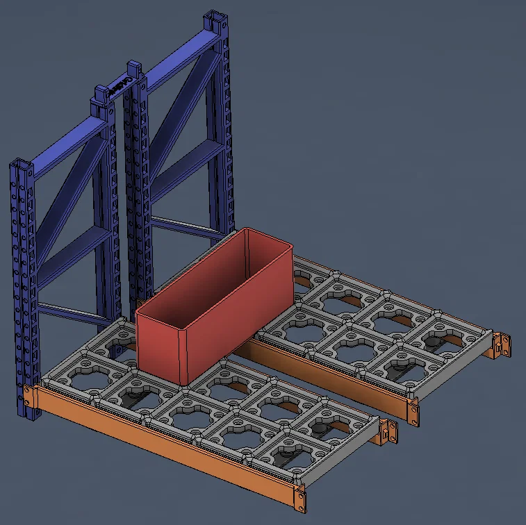 Base grid có lỗ nam châm theo tiêu chuẩn Gridfinity. Mặt dưới cũng có hai lỗ để twist-lock một số clamps (cũng có thể bắt ốc vào grid) nhằm cố định lên beams; như vậy chúng sẽ không bị bung/lift lên khi bạn muốn lấy một bin có gắn nam châm ra. Nếu bạn thấy twist lock hơi yếu thì báo mình biết, mình sẽ làm dày model lên. Hiện tại đang là 2mm. Đồng thời, nếu bạn thấy adapter Gridfinity hơi yếu thì cũng cho mình biết. Mình có thể làm dày thêm ở một vài vị trí. Mình đã hollow nó để tiết kiệm vật liệu, vì hệ racking này có thể “ăn” filament khá nhiều.