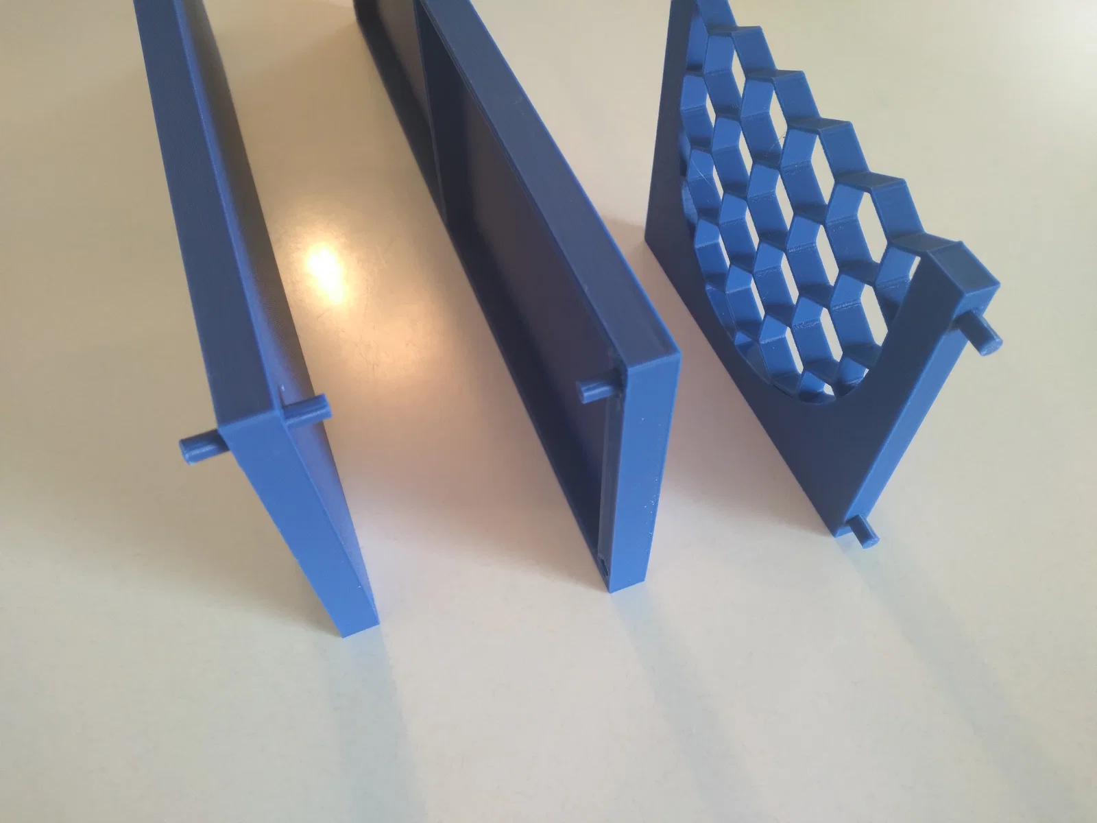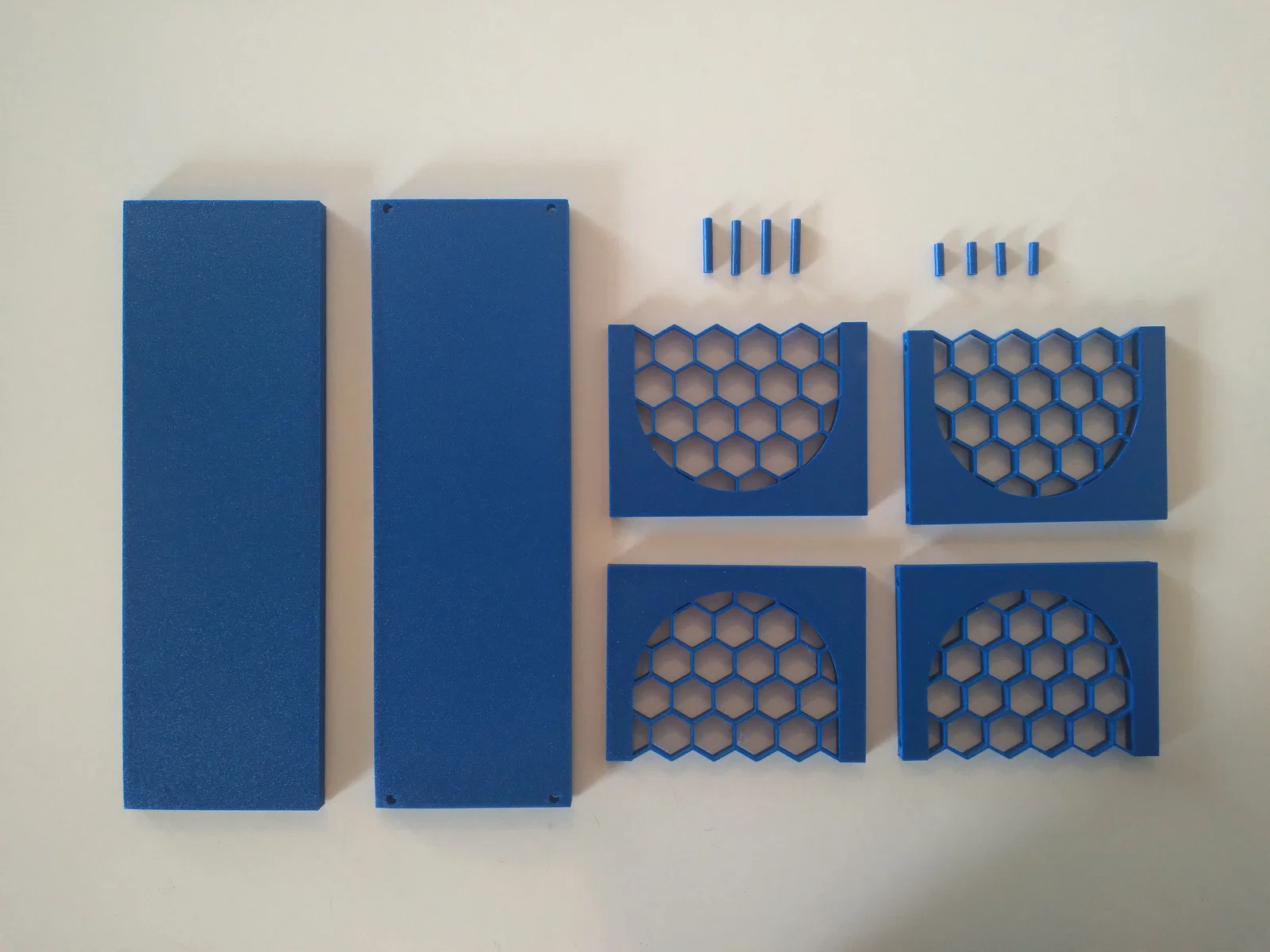 Bộ kệ nhỏ dạng modular, lắp ráp nhanh kiểu snap-together. In với PLA Pro, layer height 0.2, không cần supports. Chốt dài dùng cho tầng giữa; có thể dán thêm keo CA để chắc hơn.