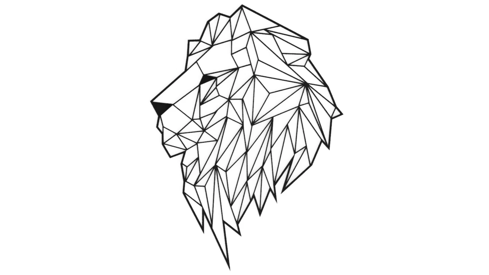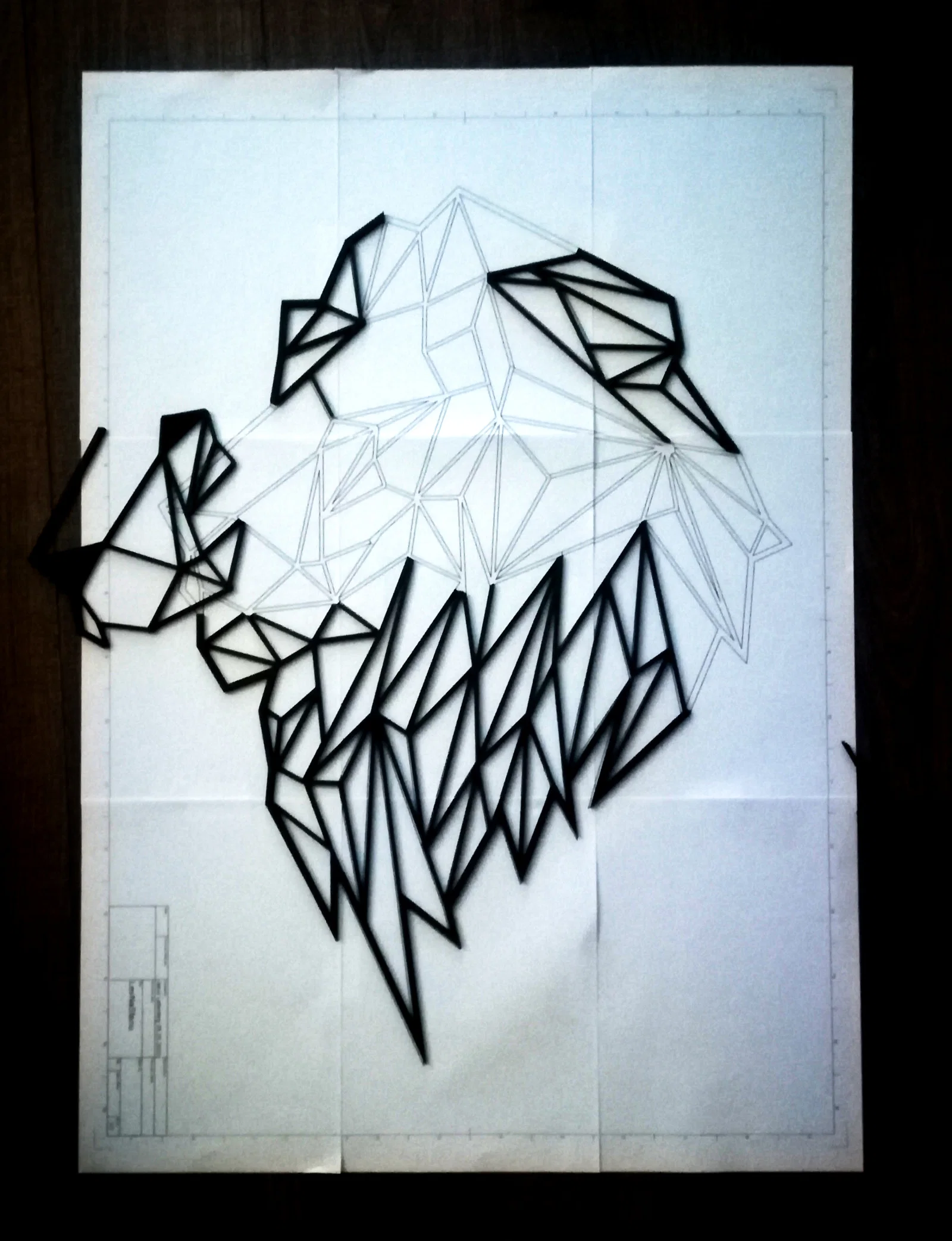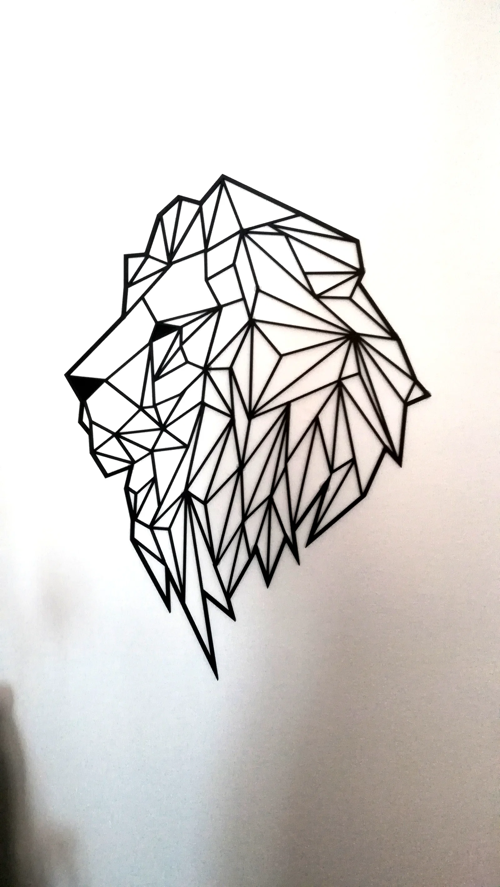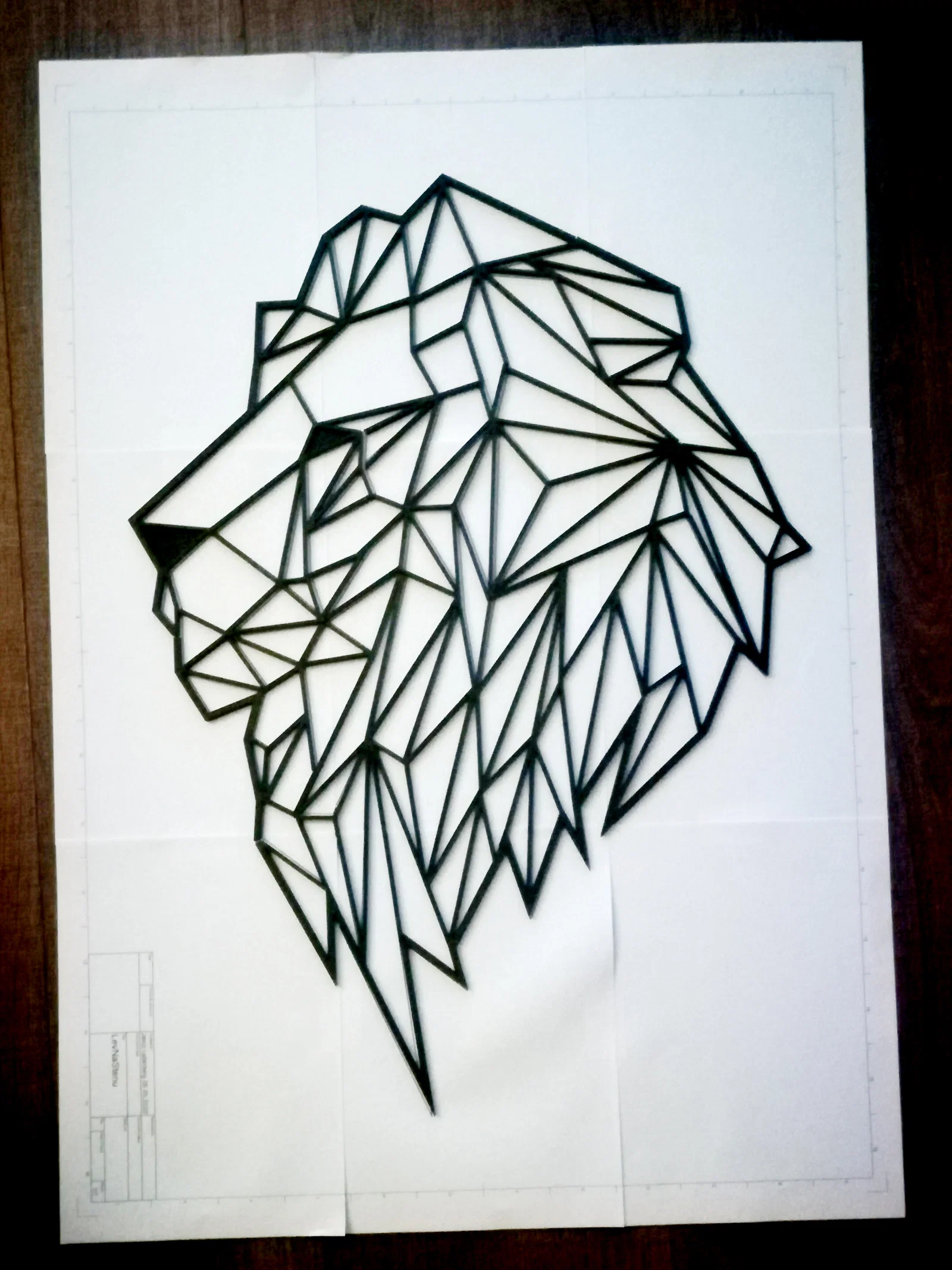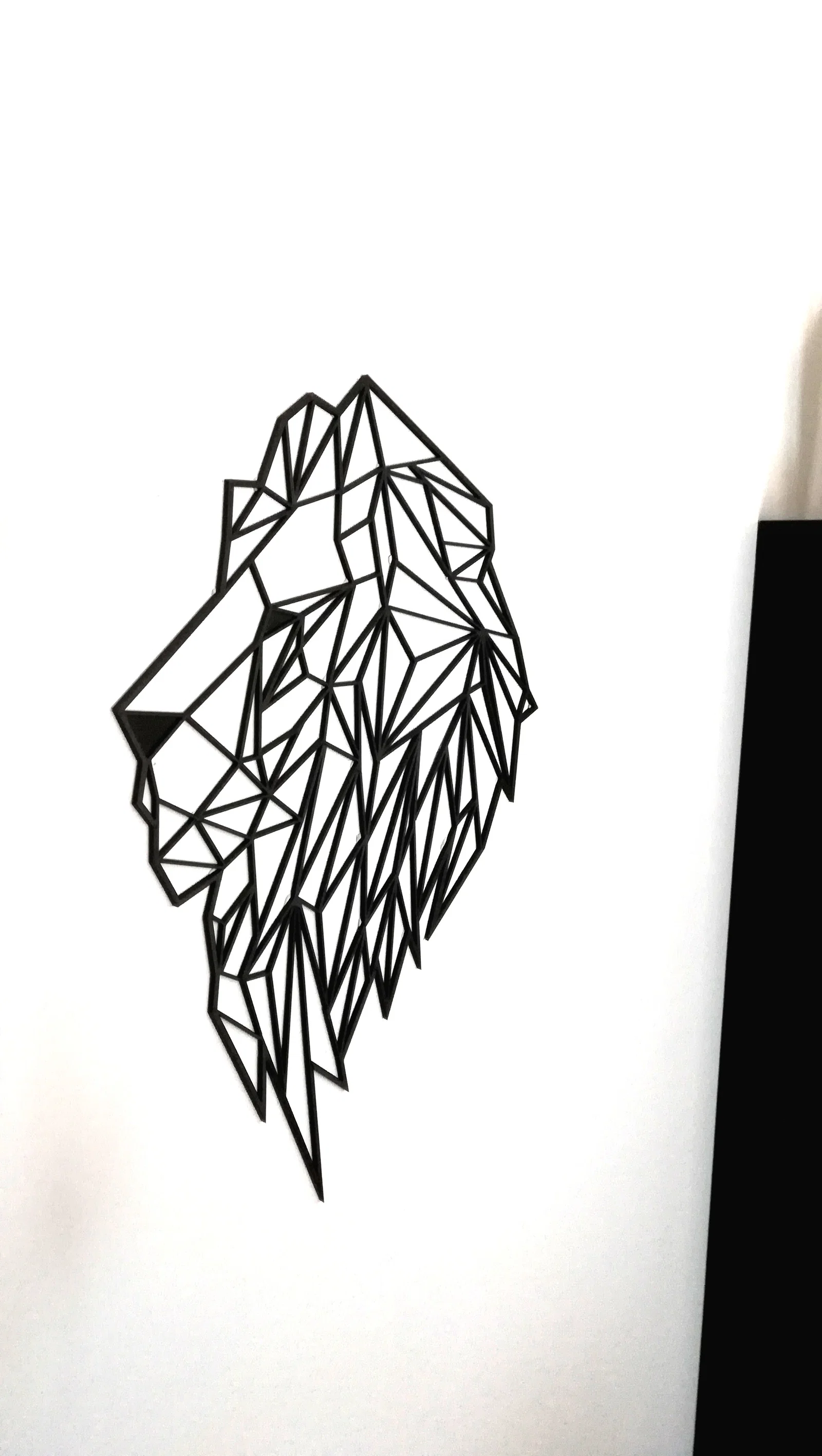 Mẫu 3D sư tử trang trí treo tường, kích thước tổng thể 509 mm × 703 mm. Mô hình được chia thành 13 phần, có thể dán keo để ghép lại hoặc dán trực tiếp lên tường.