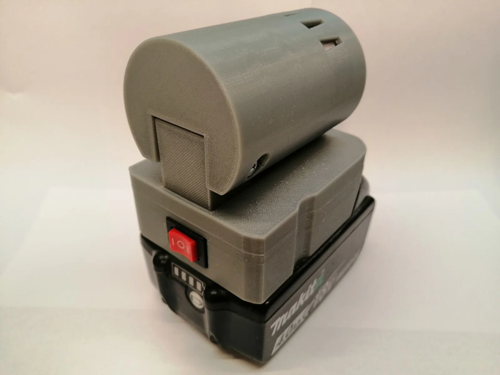 Mẫu đèn work light dùng pin Makita 18V, sử dụng bóng LED MR16 (khoảng 350lm tùy bóng). Khuyến nghị in PETG. Có tùy chọn gắn USB charger PCB hoặc chỉ in/built bản onlylamp (gcode/3mf).