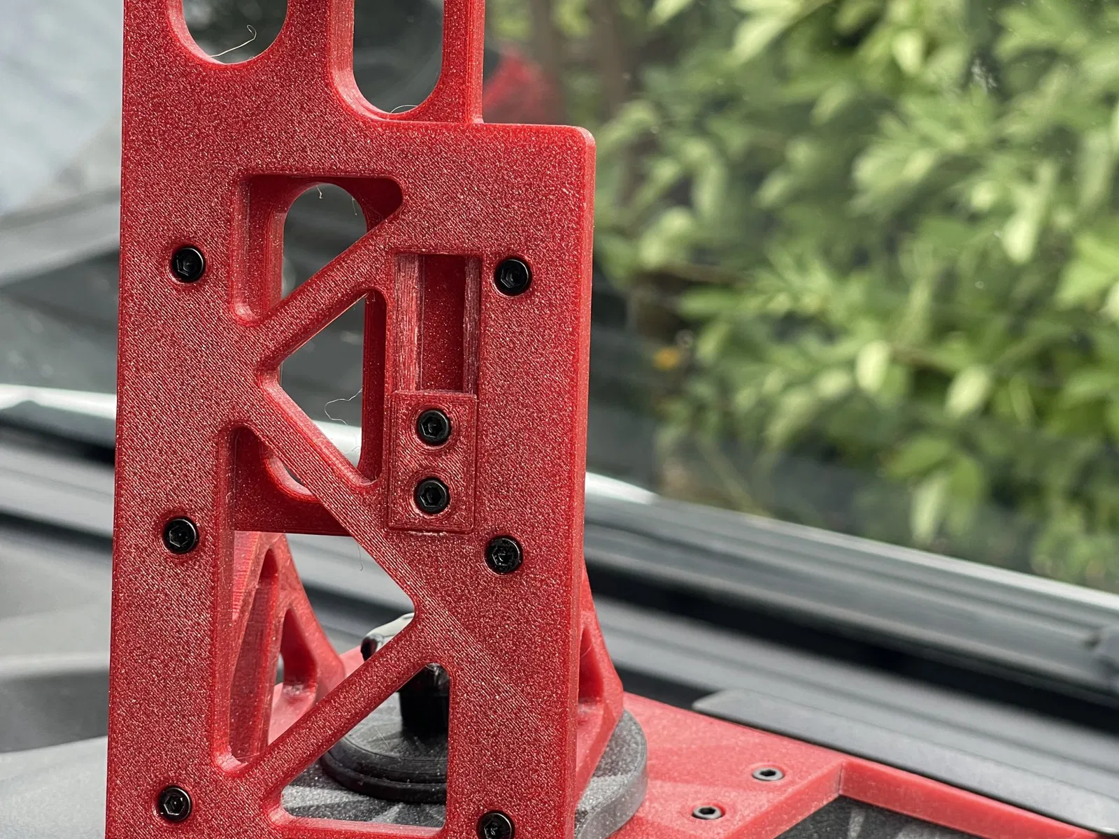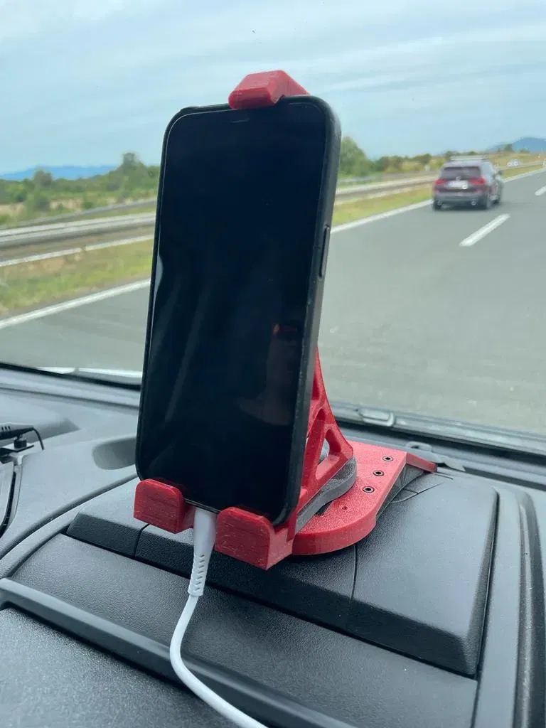 Achtung, diese Handyauflage ist eine Alternative Auflage zur Tablet-Auflage von @HelmutSchuh_1323813 für iPhone 12, iPhone 12 Pro und iPhone 12 Pro Max (und baugleiche). Es handelt sich nur um die Auflage für das Handy, es wird der Grundaufbau für die Gesamtkonstruktion benötigt. Diese findet sich unter folgendem Link: Der Remix wurde mir von ihm schriftlich und ausdrücklich erlaubt, womit ich gegen keine Lizenz Vereinbarung verstoßen habe. Für die Handyauflage habe ich keine Magnete verwendet, somit entfällt die Notwendigkeit, einen Metallstreifen ans Handy zu kleben. Um das Handy am Herunterfallen zu hindern habe ich einen Slider konstruiert, der das Handy am oberen Rand das Handy leicht an die Platte drückt. Er ist nach oben ausziehbar. In meiner Konstruktion habe ich die Halteplatte ein Stück nach oben versetzt, so dass das Ladekabel nicht direkt ins Radiodisplay/Navi hängt und freie Sicht darauf möglich ist. Zu diesem Projekt gibt es eine Facebook Gruppe. Hier gibt es die “Lebensgeschichte” vom Tablet Halter und einige weitere Informationen, sowie ältere Versionen. Auch gibt es hier Anregungen zu Verbesserungen und Änderungen. https://www.facebook.com/groups/tablethalterfd Ich habe für den Zusammenbau 14 schwarze Zylinderkopfschrauben M3 verwendet (nur für die Handy Auflage). Es können aber auch 2.9er Blechschrauben mit Linsenkopf verwendet werden, so wie beim Grundaufbau von @HelmutSchuh_1323813.