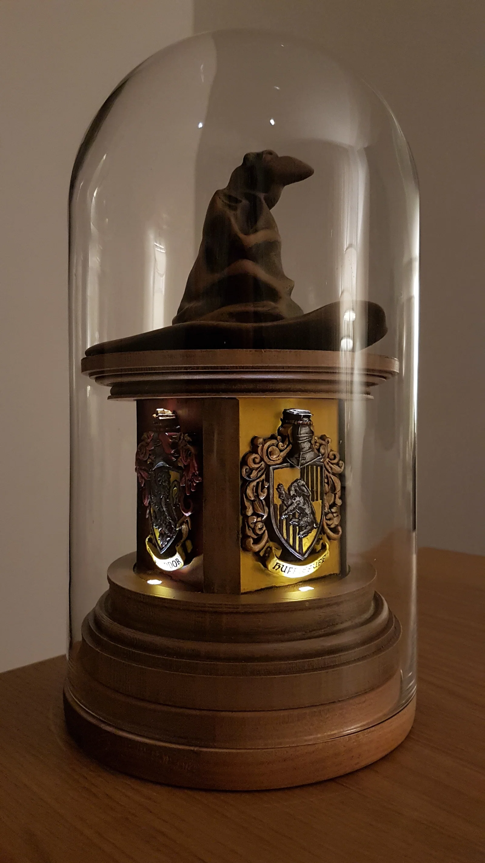 Dồ trang trí theo chủ đề các nhà ở Hogwarts. Phần đế được thiết kế để tích hợp LED và có không gian cho pin 9V. Tất cả được đặt trên một đế gỗ kèm chuông kính.