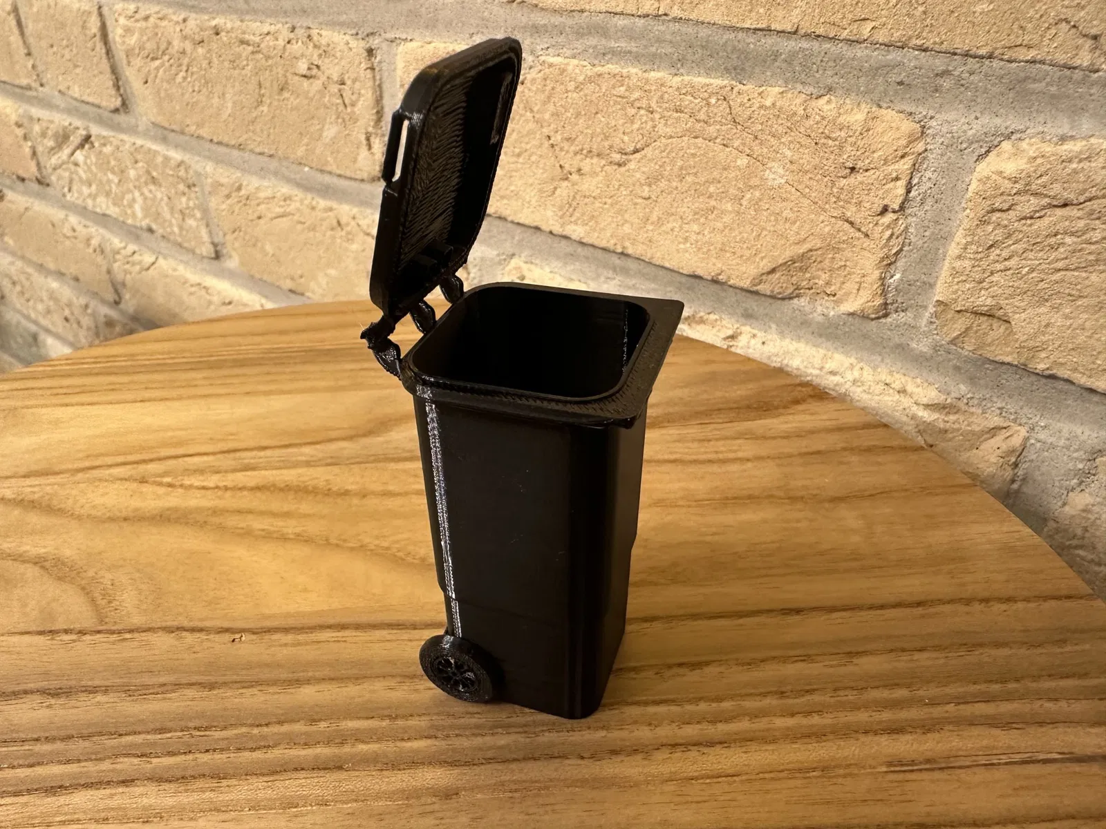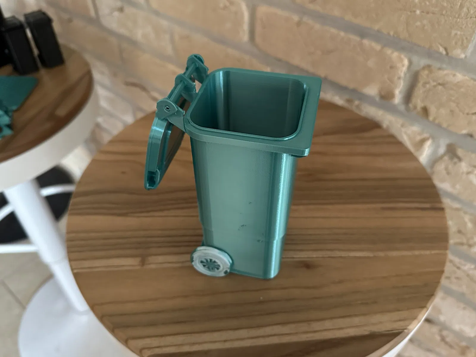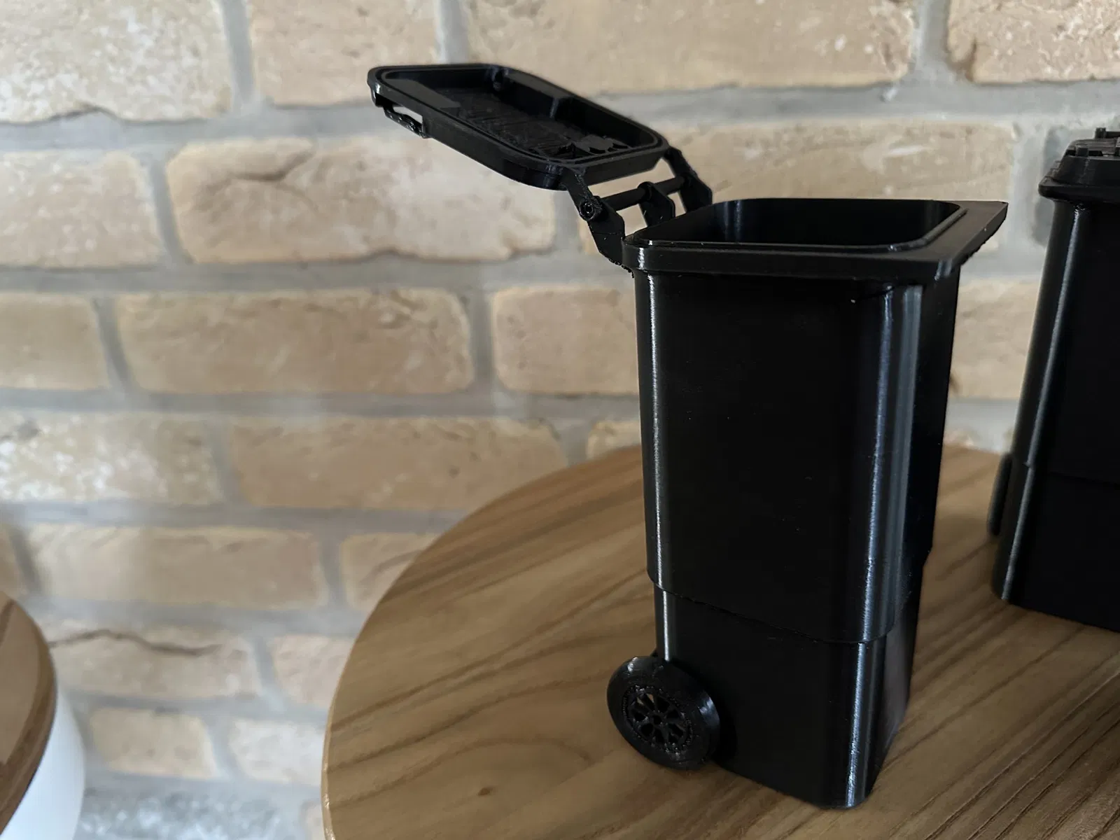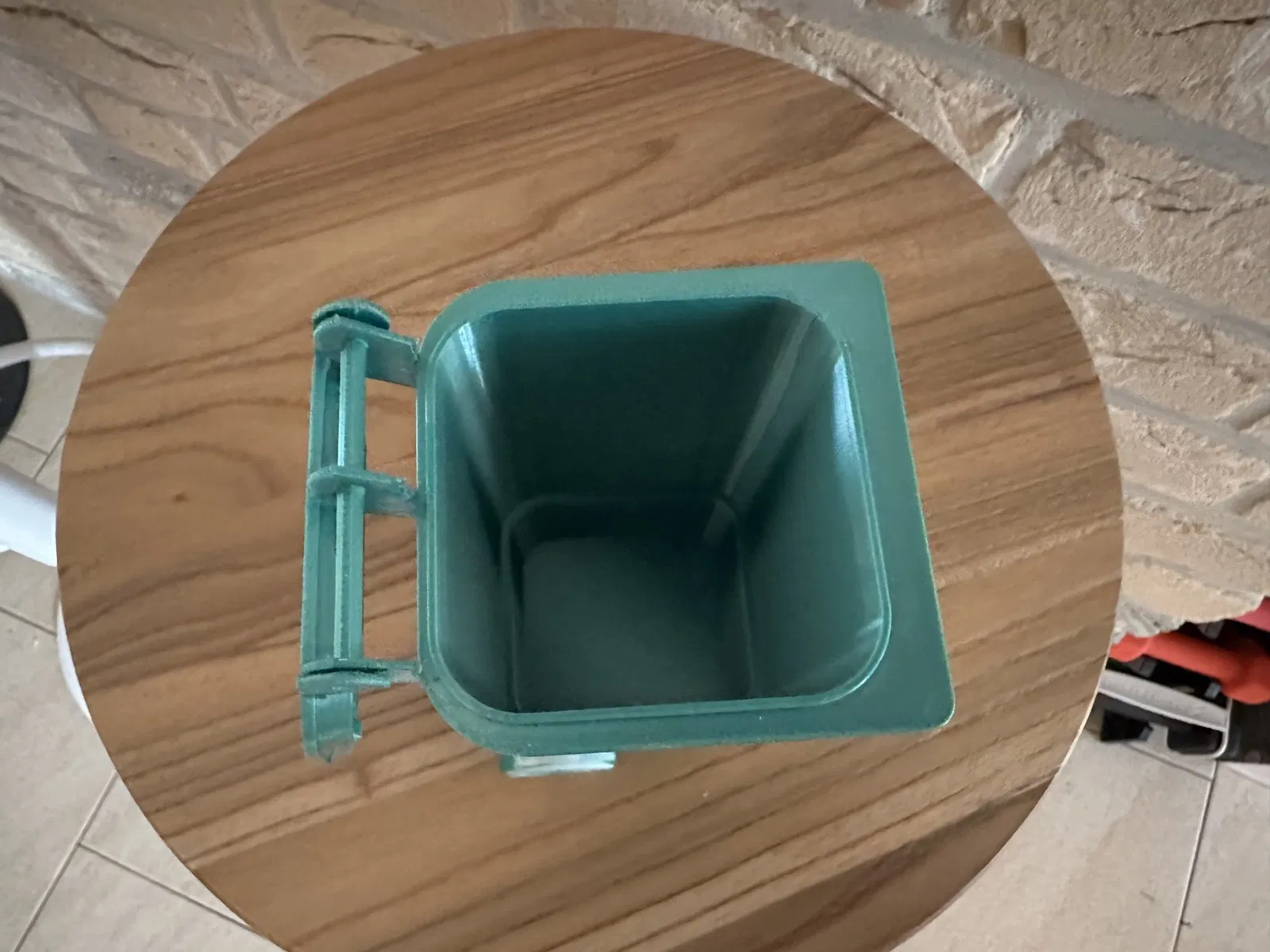 Thùng chất thải thu nhỏ được in 3D (1: 6) cho nhà búp bê có nắp mở và trò chơi thực tế bánh xe xoay