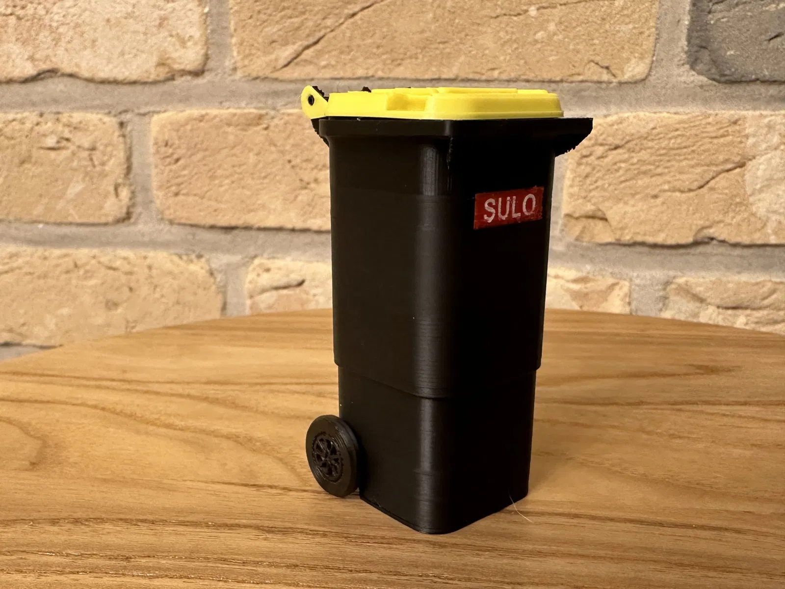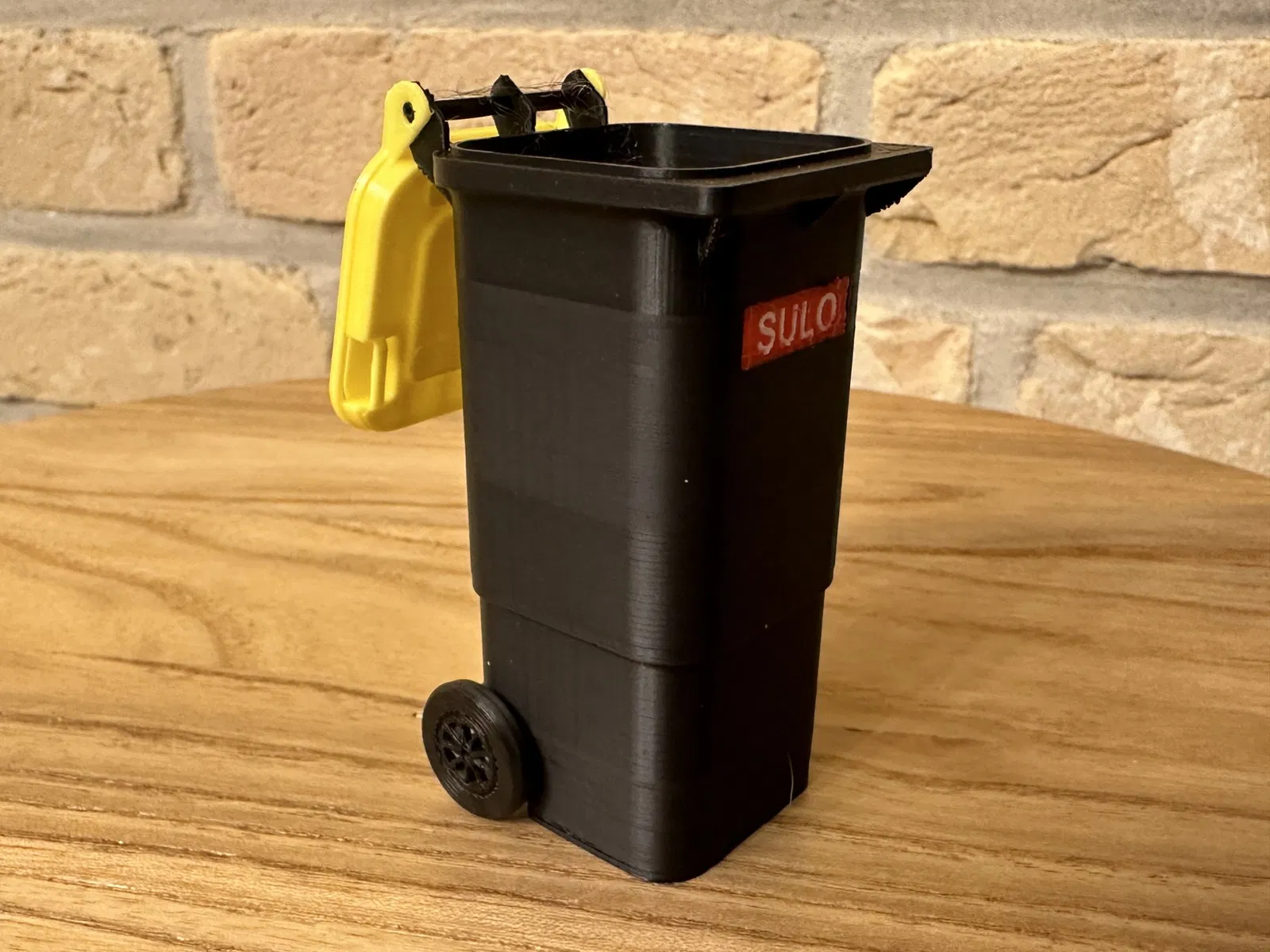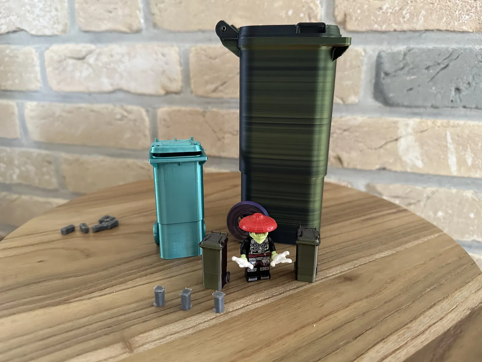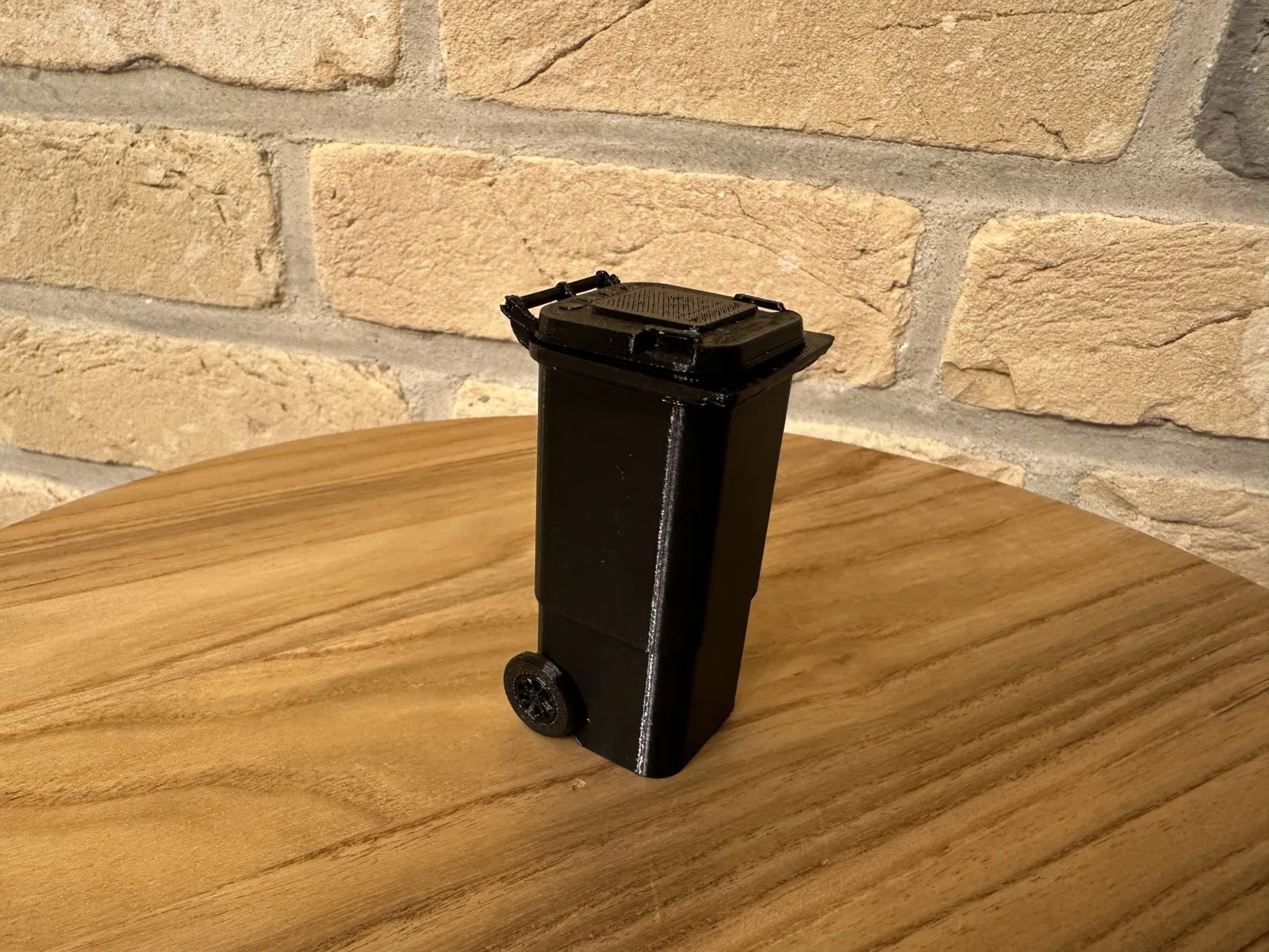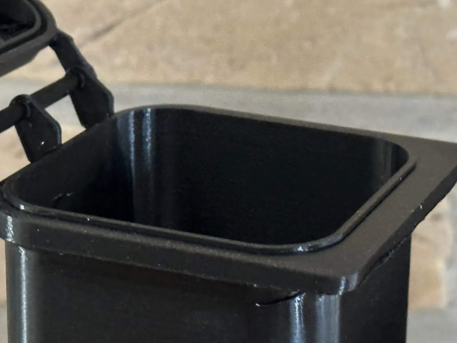 Thùng chất thải thu nhỏ được in 3D (1: 6) cho nhà búp bê có nắp mở và trò chơi thực tế bánh xe xoay