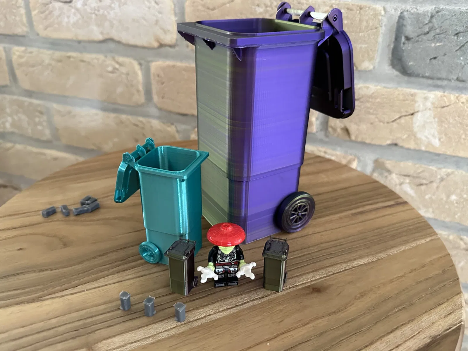 Thùng rác in 3D tỷ lệ 1:6 cho ngôi nhà búp bê là một mô hình thu nhỏ ấn tượng. Bộ sản phẩm này bao gồm một thùng chi tiết với các đặc điểm sau: