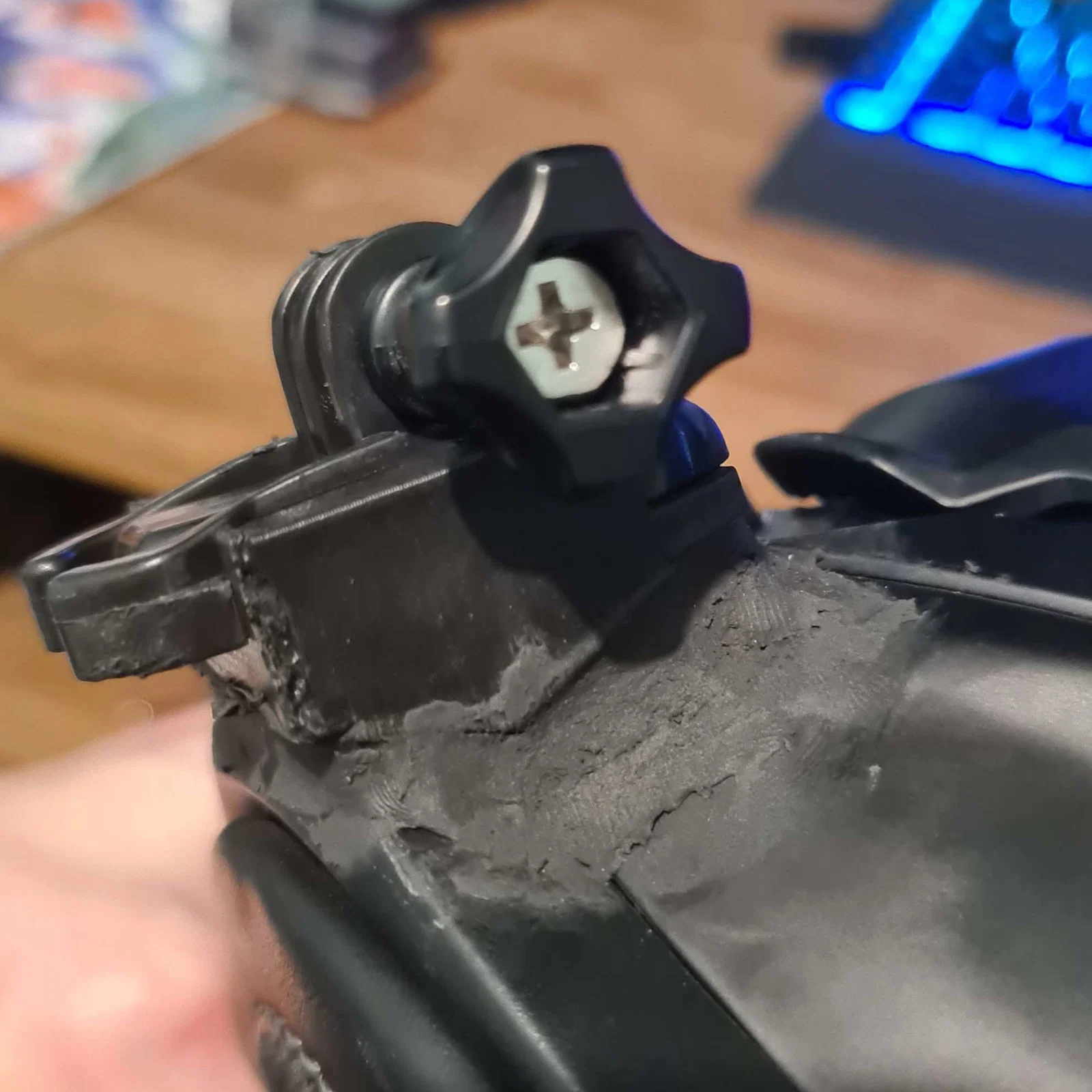 Đây là mount GoPro mình làm cho nón HJC RPHA 71. Đây là phiên bản thứ 7 mình thiết kế, và tới giờ là bản ngon nhất—form gọn gàng, dán lên nón bám rất tốt.