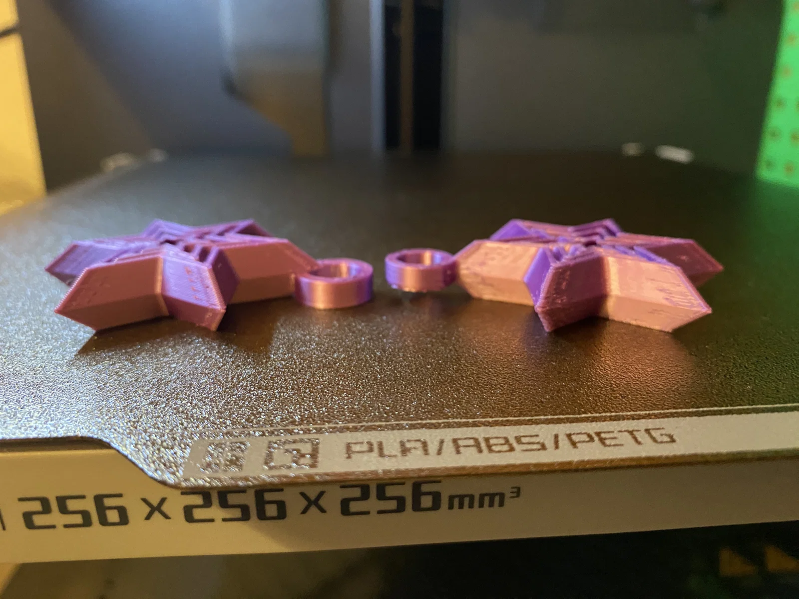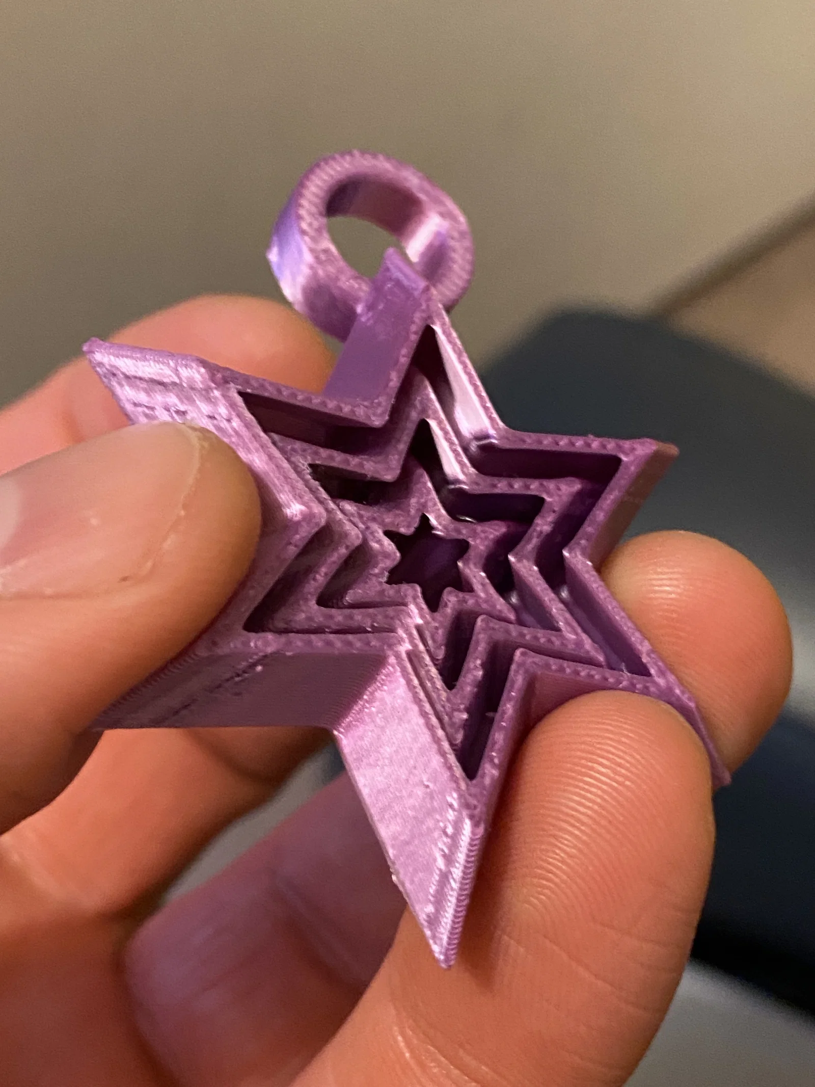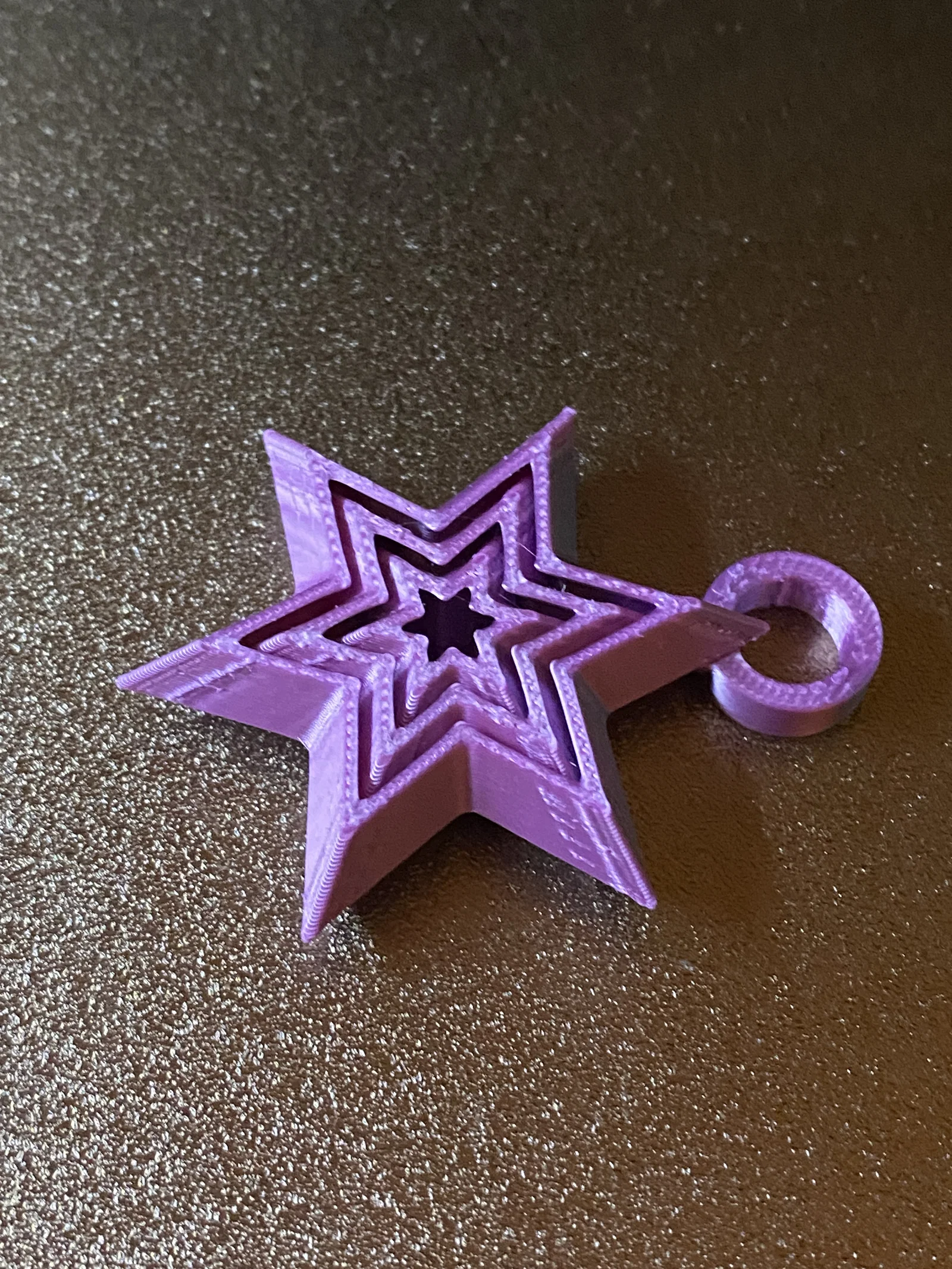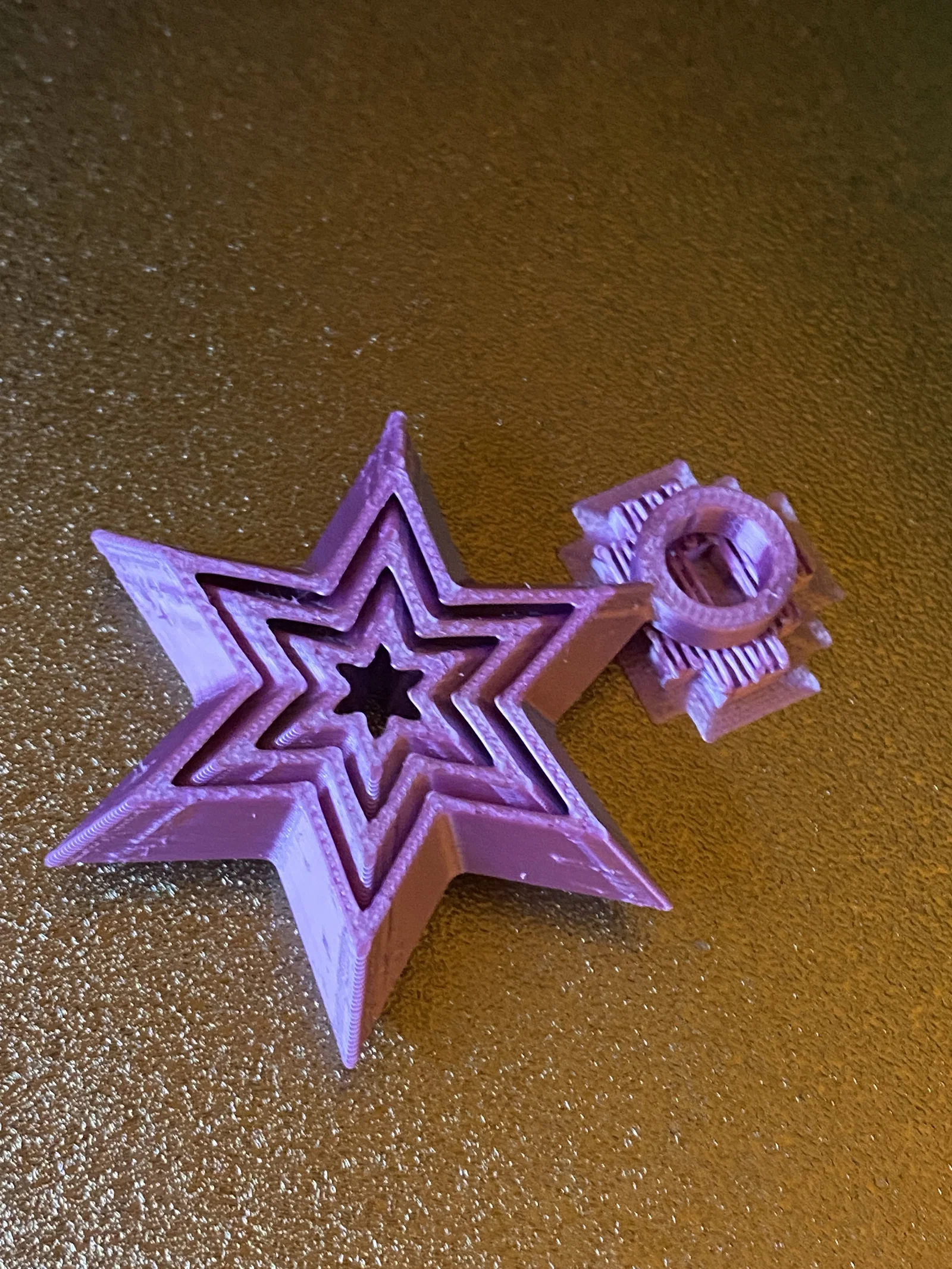 Móc khóa mini fidget hình ngôi sao với 2 phiên bản. Bản lỗ móc dưới in không cần supports. Bản lỗ móc ở giữa cần manual supports, chỉ paint supports tại khu vực lỗ.