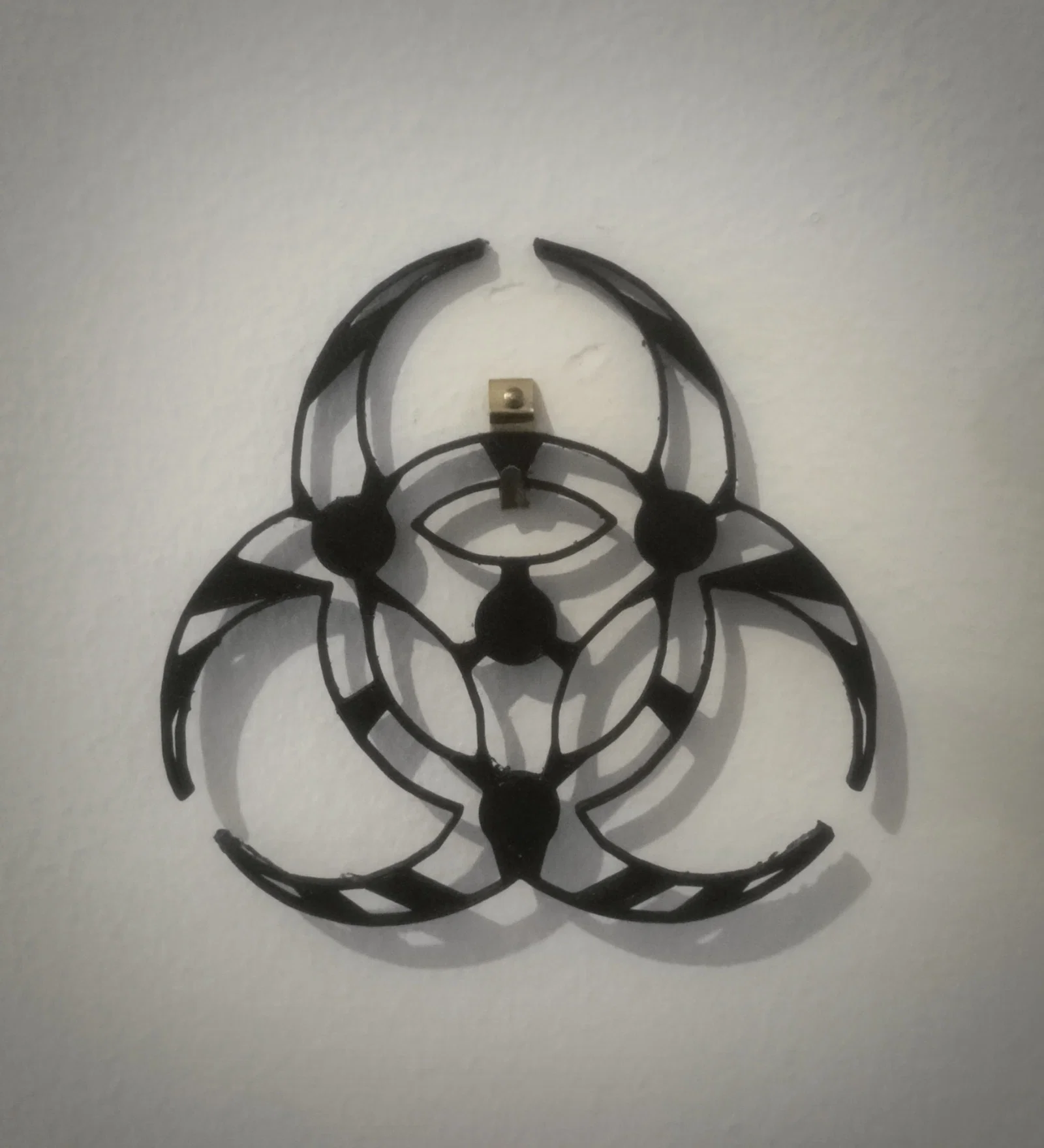 Mẫu 2D biểu tượng biohazard được thiết kế có các khe hở, phù hợp làm bảng treo tường hoặc trang trí. Dễ in 3D và dùng làm signage/biển cảnh báo theo nhu cầu.