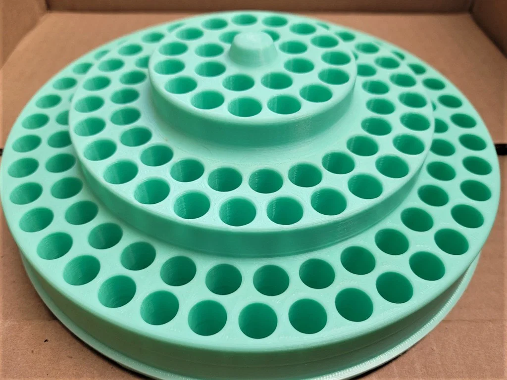 Mình làm thiết kế này để bạn không cần supports. Bản 149 lỗ bút mình in mất khá lâu. Mình in bằng ABS, nhưng PETG hoặc PLA thì vẫn ok.