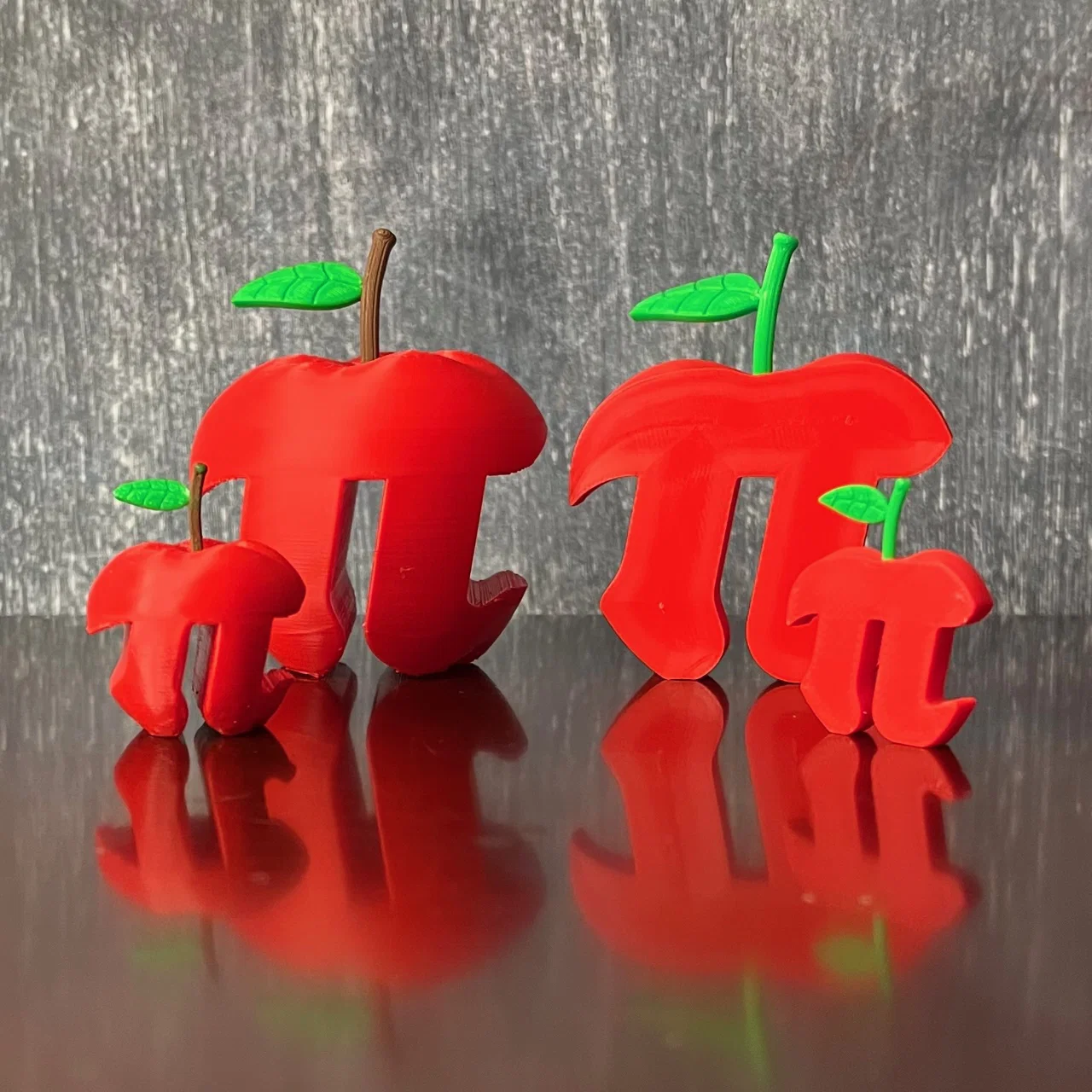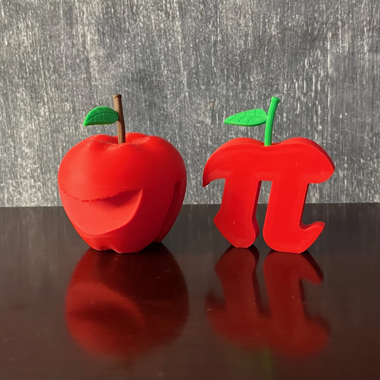 Apple Pi là một câu đùa “vô tỉ” kéo dài hoài. Mẫu in gồm 2 mảnh ráp trượt vào nhau; có bản nguyên trái cần supports và bản SliceOApplePi cắt lát thì in không cần support.