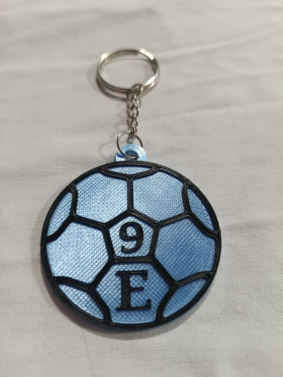 Mẫu móc khóa bóng đá (soccer keychain) dạng cá nhân hóa, thiết kế để in được nhiều màu chỉ với một extruder. Khuyến nghị layer height 0.2, initial layer 0.2 và đổi filament ở layer 11.
