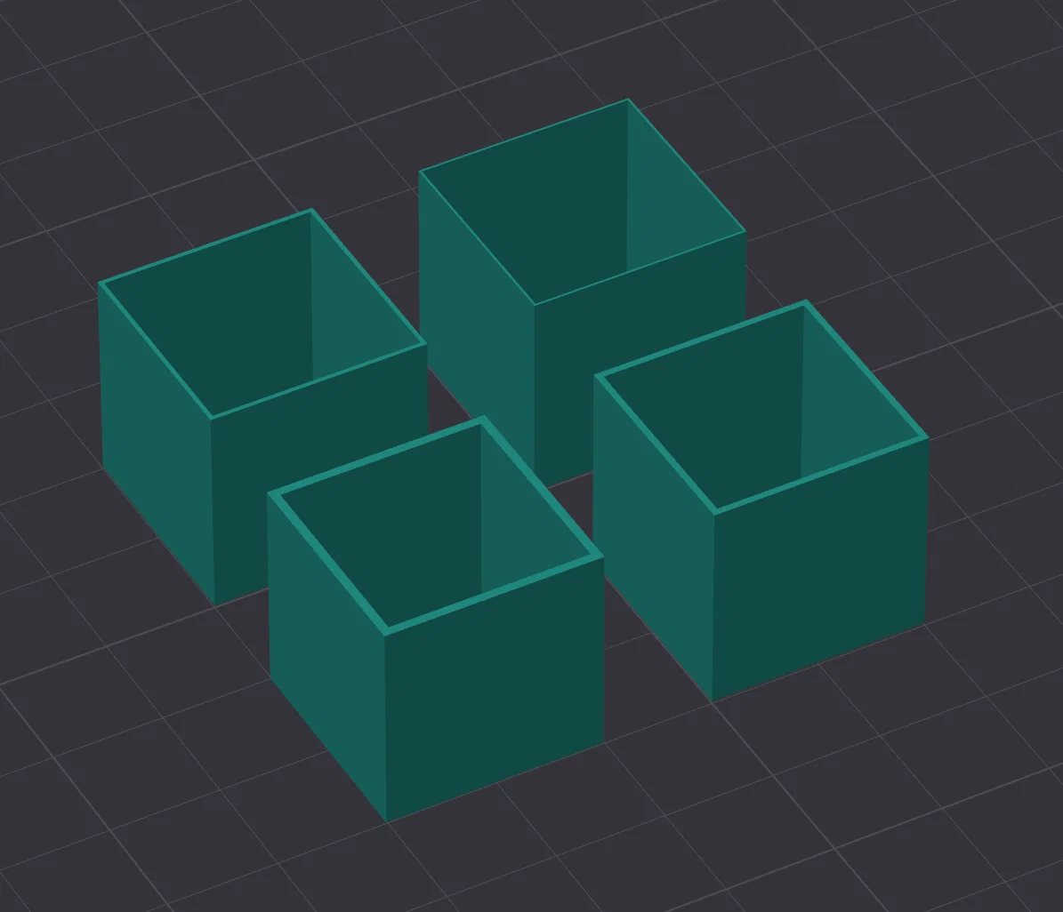 Bộ calibration cube 20x20mm, lõi rỗng để nhét caliper đo bề dày tường và kiểm tra độ chính xác. Đáy lộ giúp soi top layer. Nhiều mức 0.2/0.4/0.6/0.8mm, in nhanh, tốn ít filament.