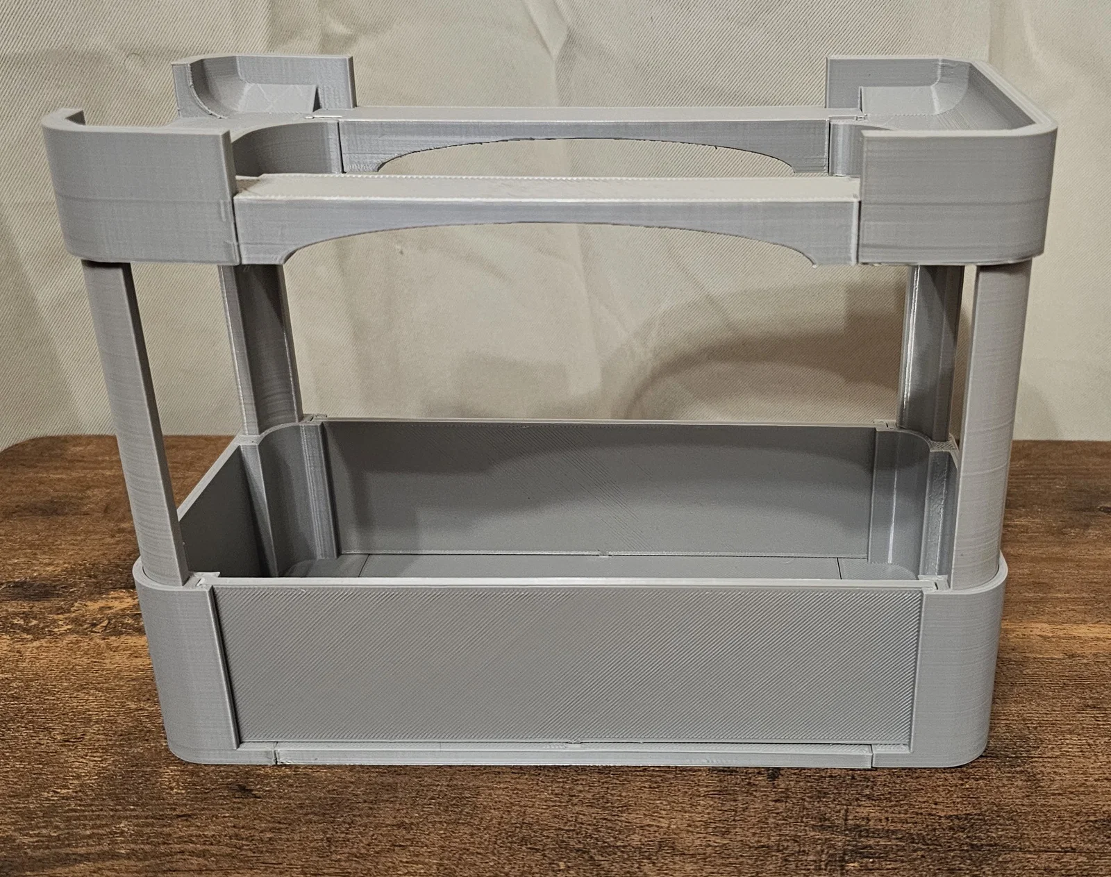Stand dành cho Creality Filament Dry Box 2.0, có thêm hộp chứa phía dưới để cất phụ kiện 3D printing. In gần như không cần supports (trừ legs cần brim), không bắt buộc dùng keo nhưng có thể dán để chắc hơn.