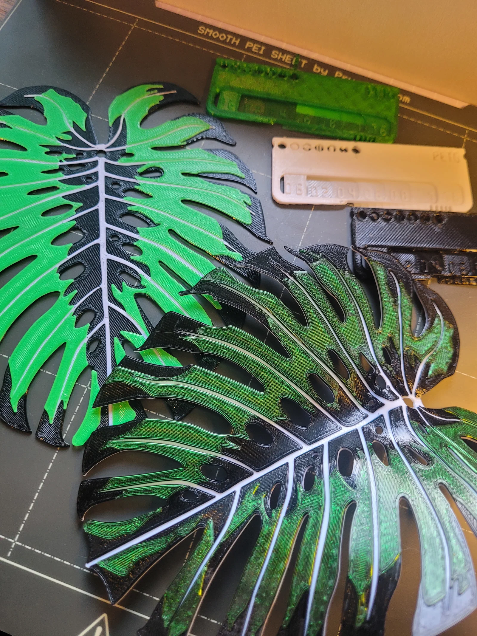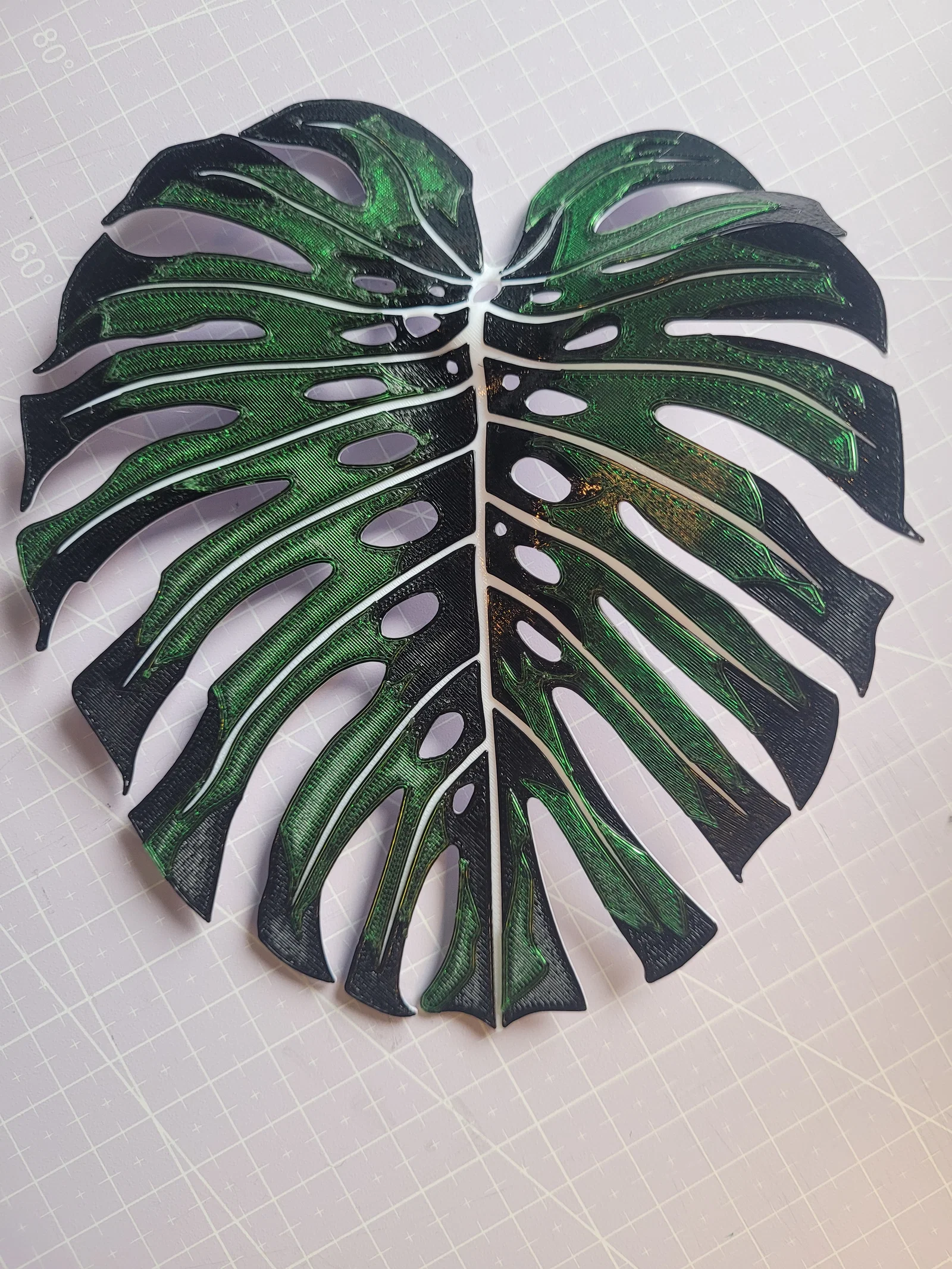 Chiếc lá đậm màu hơn được in bằng file “Monstera S12 B16 A08” (S=black, B=Green, A=White).