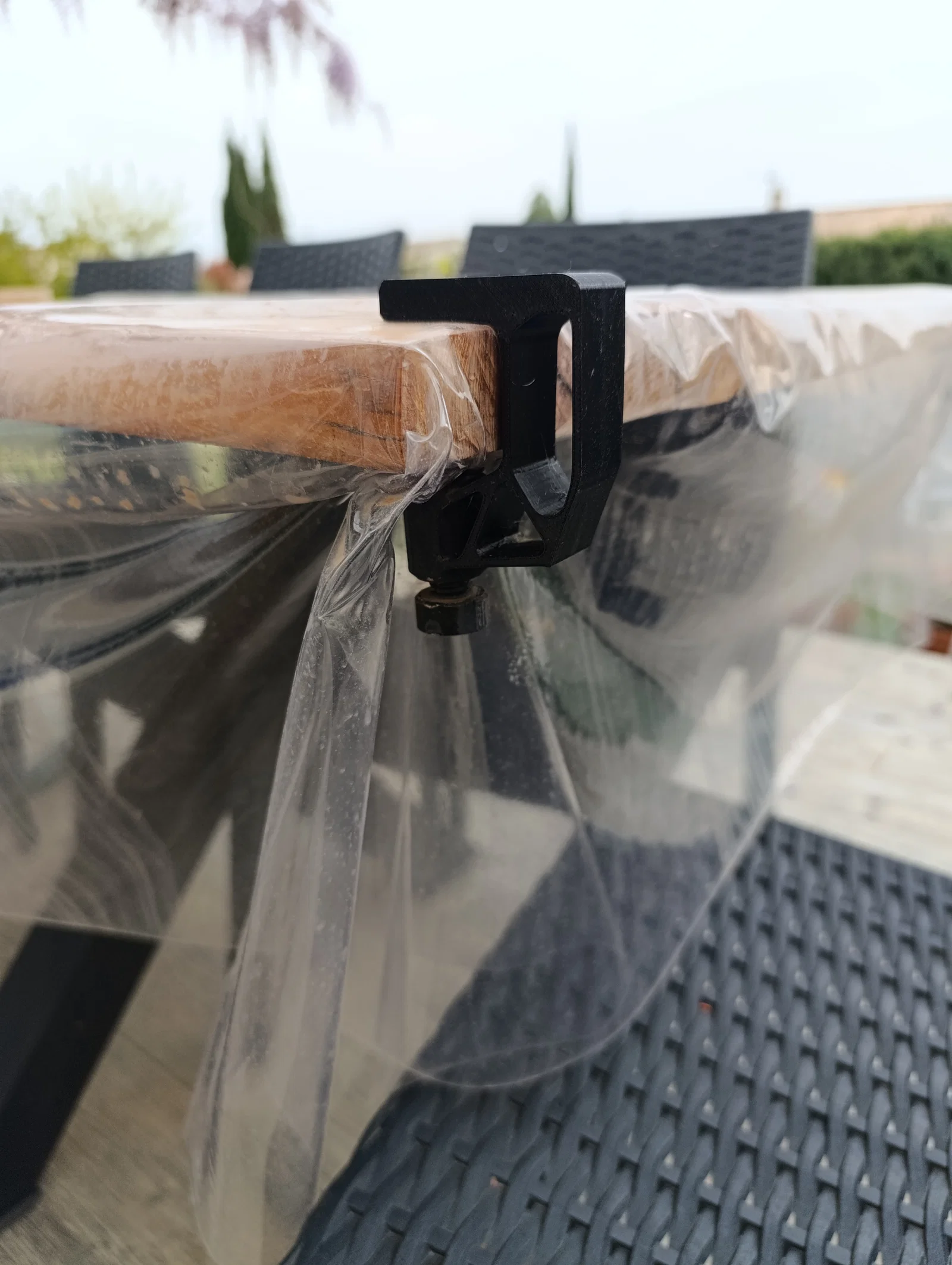 I couldn't stand the metal tablecloth clips any longer... It rusts and doesn't hold well at all. So here I was inspired by a creation that I remixed and we have a nice thing ideal for wooden tables or other.