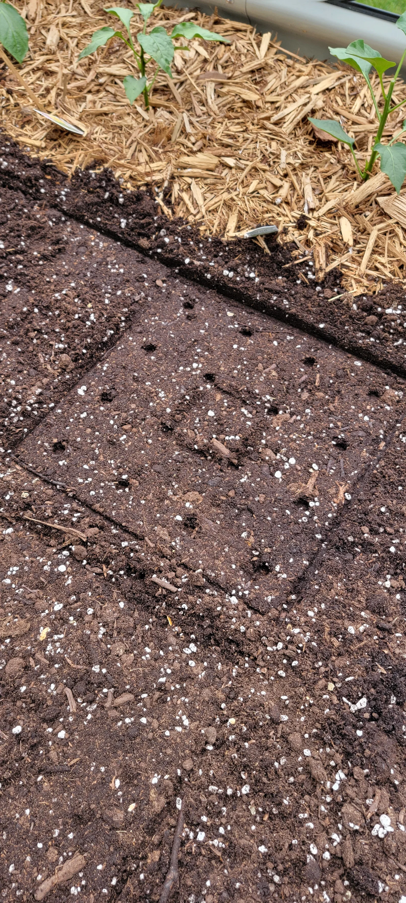 Mình làm cái template xài lại được này cho kỹ thuật Square Foot Gardening. Nó giúp bạn canh khoảng cách và gieo hạt đúng cách tùy theo mật độ trồng (ví dụ: 9 cây spinach, 16 cây cà rốt, hoặc 1 cây ớt… cho mỗi ô vuông 1 ft²).