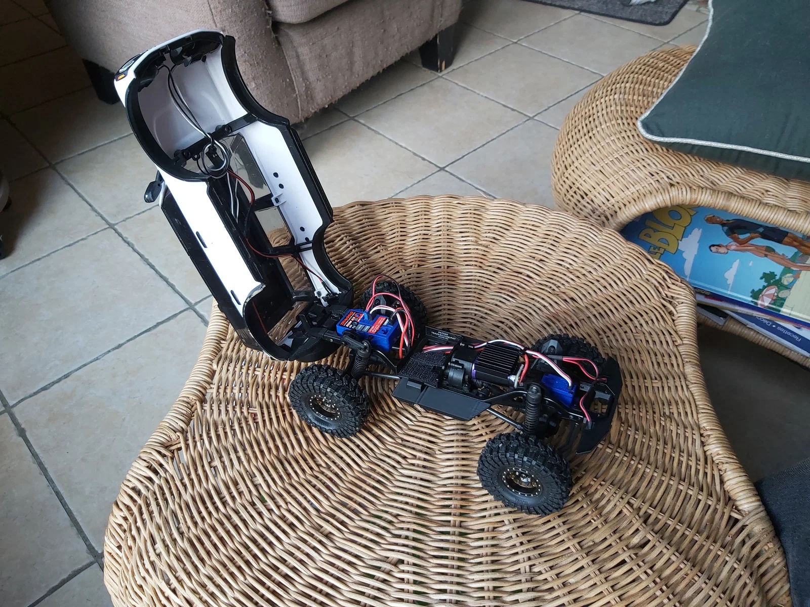 Thiết kế này cũng giúp mình làm được cơ chế hinged body: toàn bộ thân xe có thể lật lên để truy cập bên trong mà không cần loay hoay dùng hai tay hay phải tách body khỏi chassis. Có thể đây là “world’s first” khi dùng body Bronco zin (ít nhất theo 5 phút mình google, nên nếu mình sai thì nhắc mình nha :))