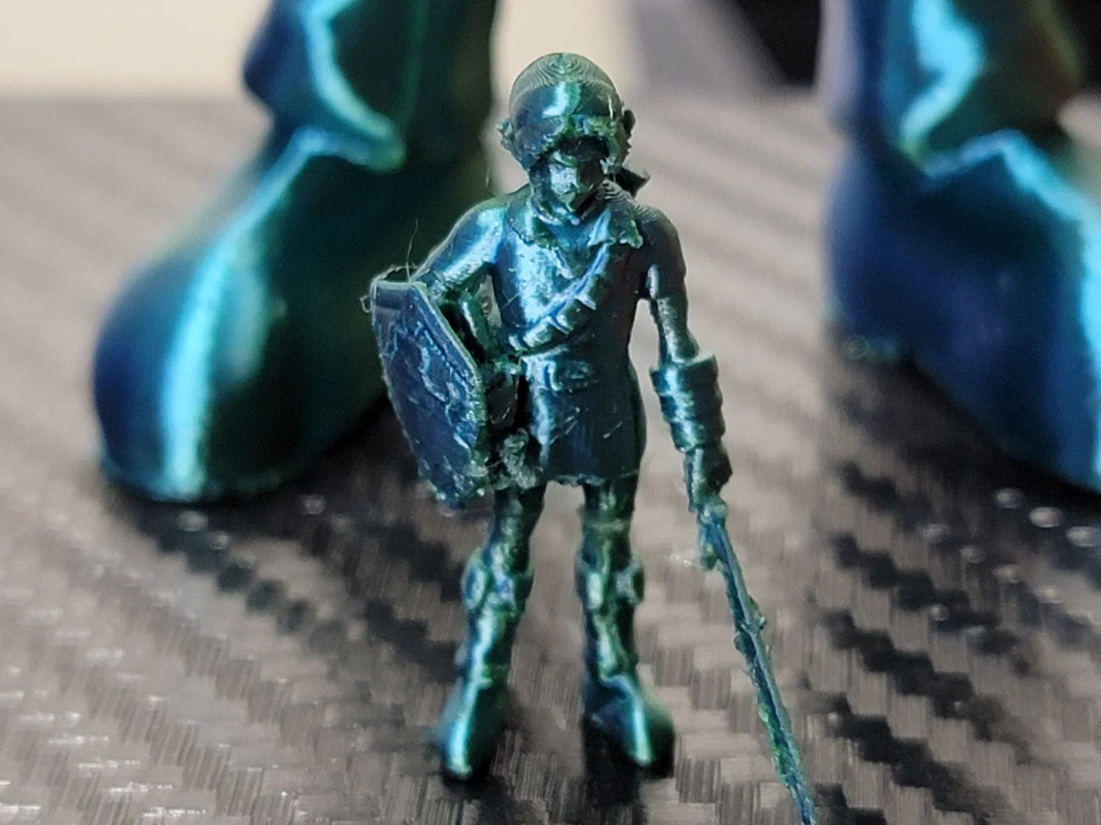 Mẫu này cũng còn nhiều chỗ có thể dọn lại. Bàn chân của Link không nằm trên một mặt phẳng phẳng hoàn toàn, nên bạn có thể cần hạ mẫu xuống 1–2mm vào build plate để chân thật sự phẳng. Có một cái dây/đai từ cái khiên bị cắt cụt/mất một đoạn khá lạ, phần đó cần kỹ năng 3D modeling cao hơn khả năng của mình. Ai muốn thì cứ thoải mái re-remix để làm mượt/chỉnh cho ngon hơn nữa.