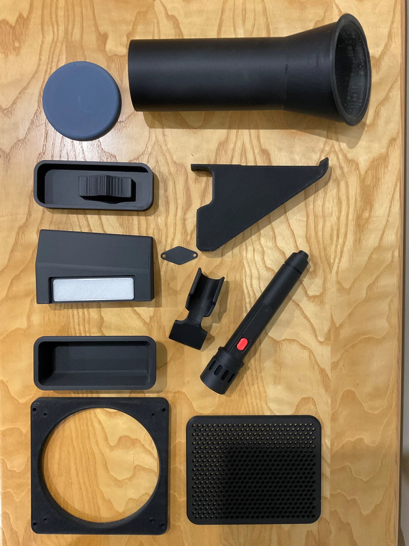 In bằng PLA màu đen mờ, infill 50% hoặc cao hơn. Layer height 0.15 để đạt bề mặt mượt ở các góc nghiêng.