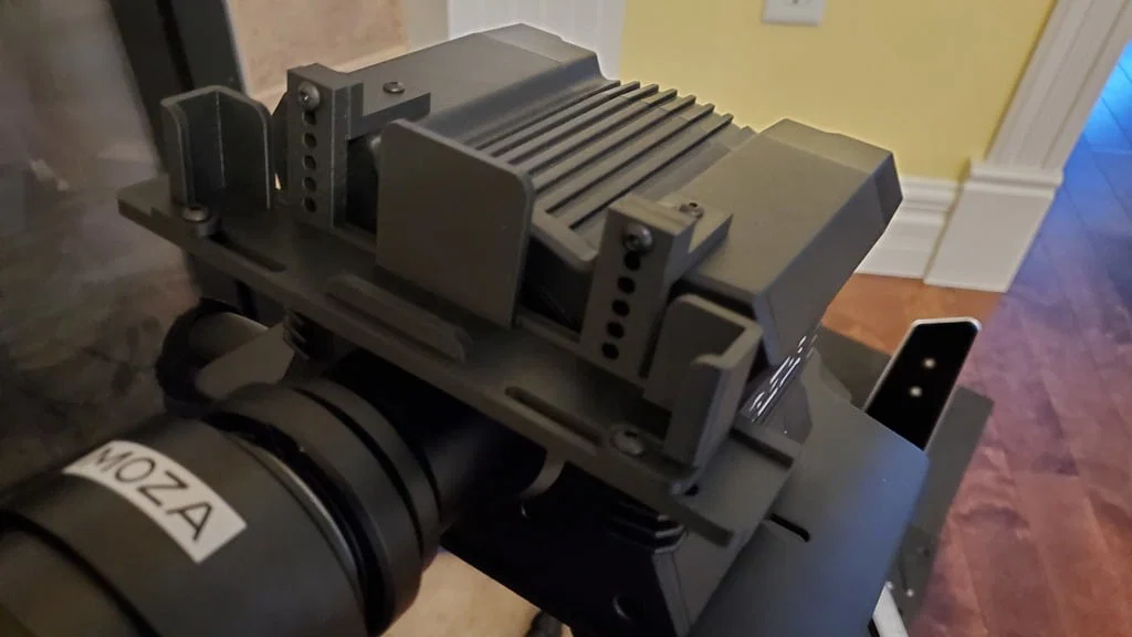 Gá đỡ điện thoại điều chỉnh cho wheel base Moza R5, R9, R12 với 6 mức chiều cao. Kẹp được điện thoại tới 175mm x 13mm (có bản tới 194/220/250mm). Lắp bằng ốc M4, in không cần support.