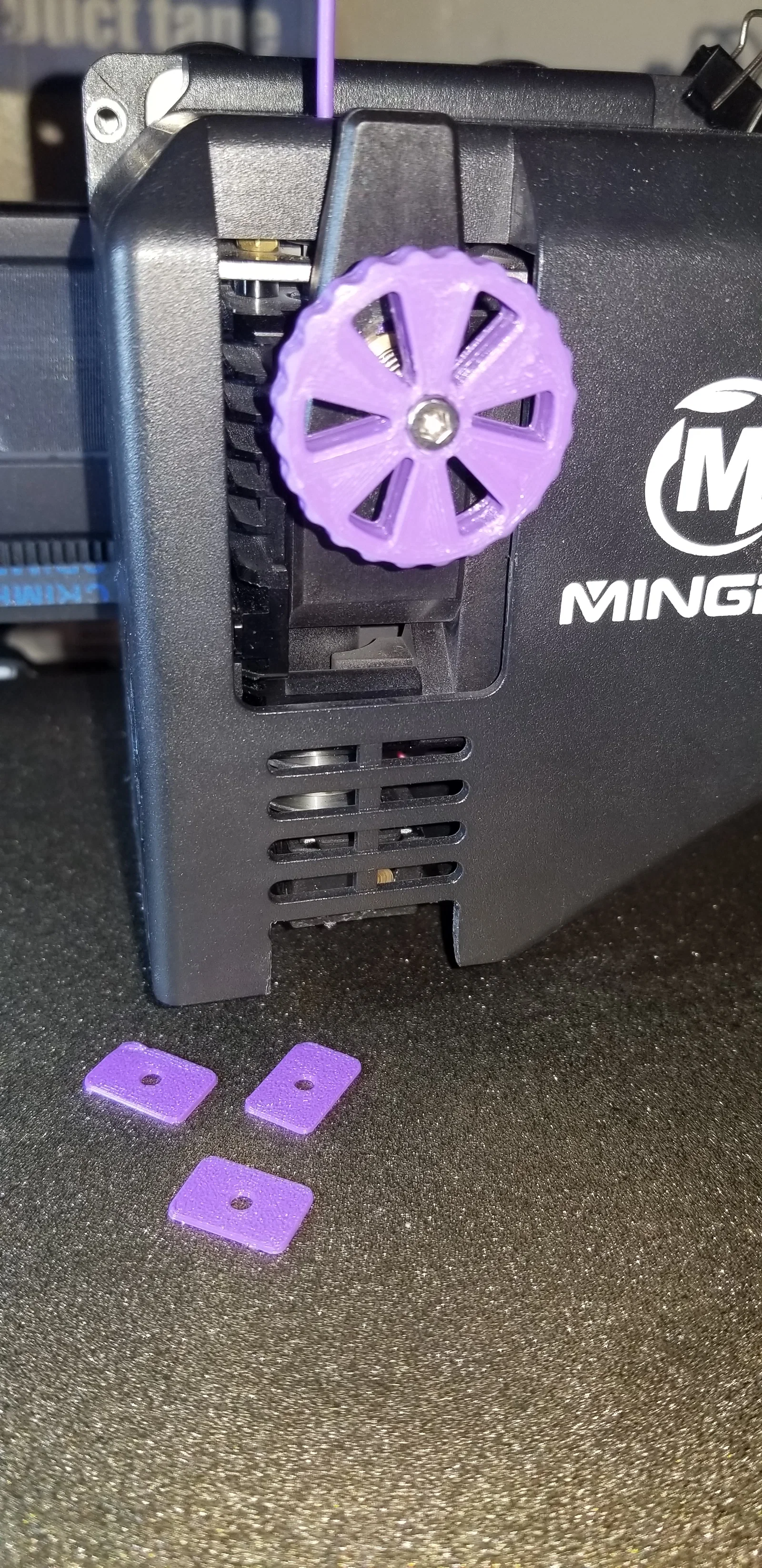 Mingda Magician Series - Extruder Tensioning Screw … Bản zin thì đúng kiểu “vừa ghét vừa ghét”. Vít quá ngắn, đường kính đầu vít quá nhỏ — làm lúc lắp khi đã nạp filament sẵn gần như không thể vặn vào (ít nhất là với mình). Mình thêm một retainer washer để giữ (captivate) cụm knob assy (đỡ phiền hẳn!). Hết “vừa ghét vừa ghét”. https://imgur.com/a/cG6NK2c